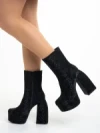 Botine dama negre din material textil cu toc Iriana Detalii produs