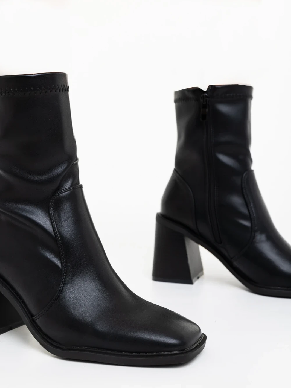Botine dama cu toc negre din piele ecologica Santana Detalii produs