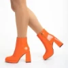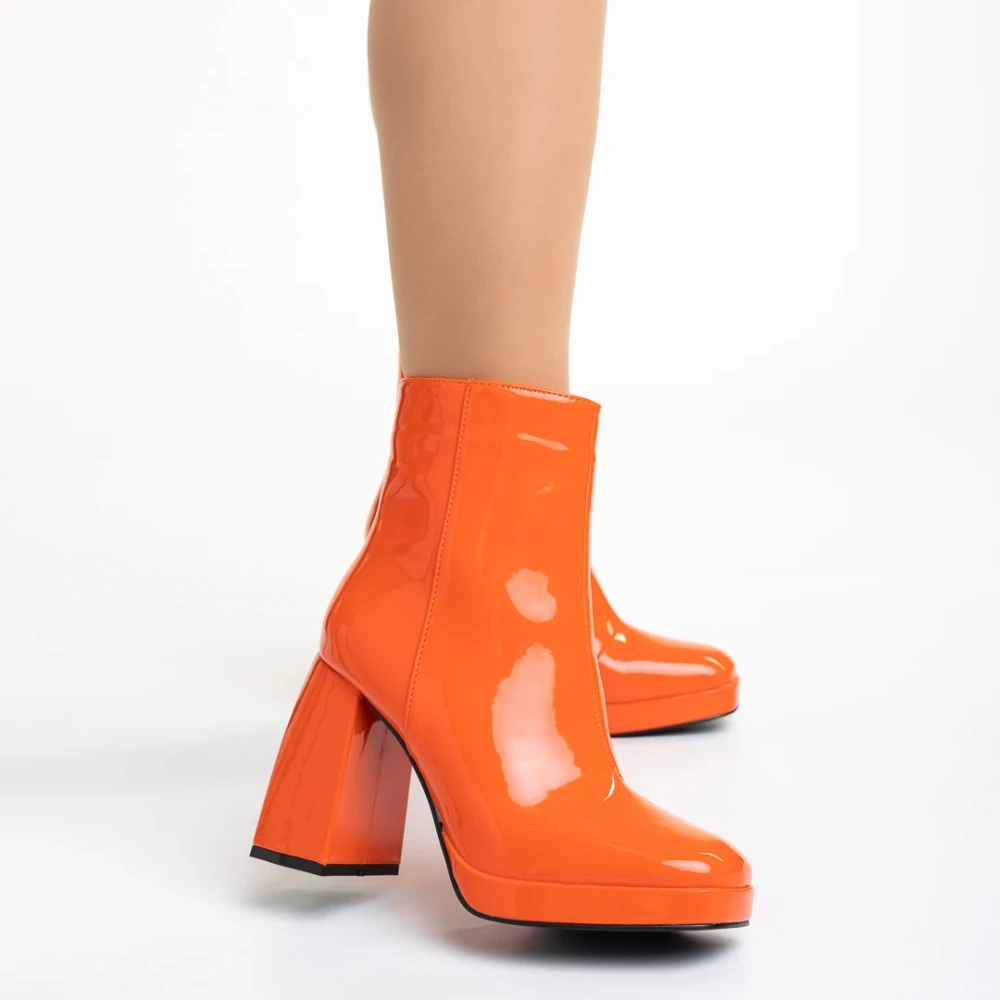Botine dama portocalii din piele ecologica lacuita Rosalita Detalii produs