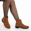 Botine dama camel din piele ecologica si material textil Ivy Detalii produs