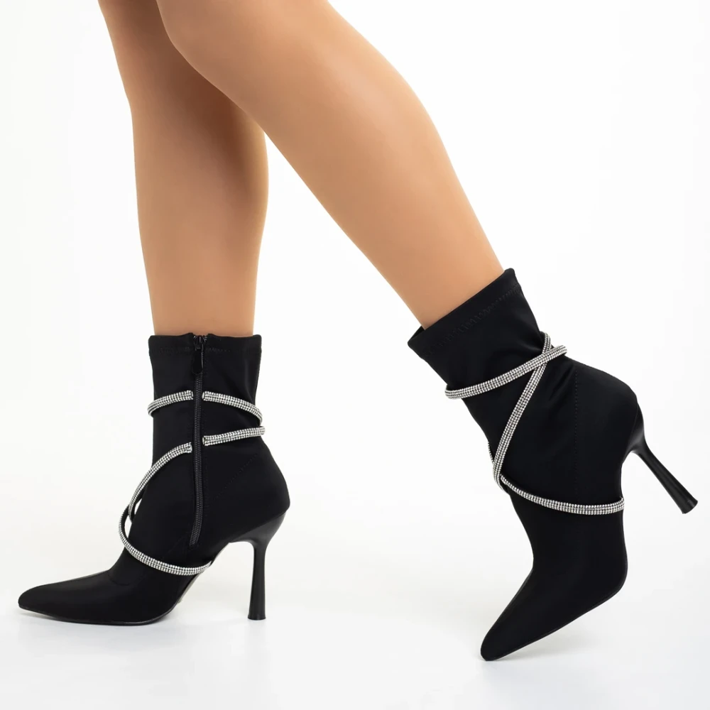 Botine dama negre din material textil cu toc Daila Detalii produs