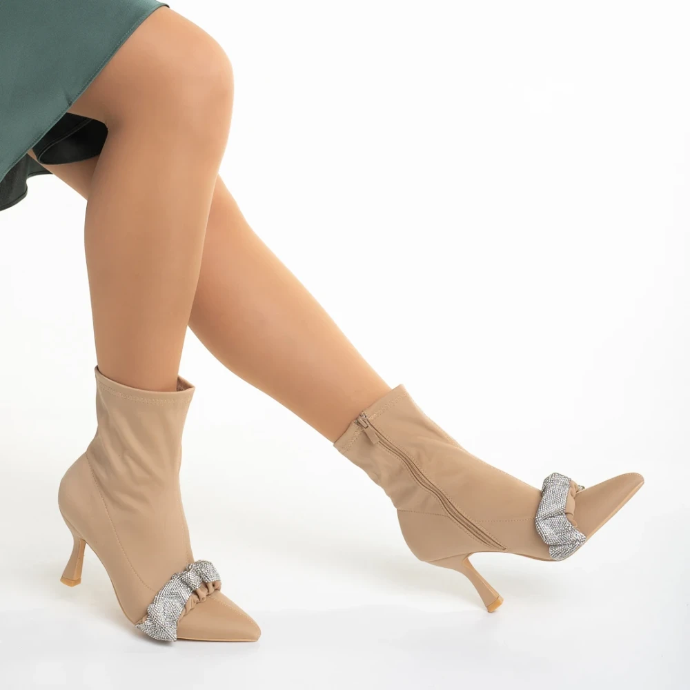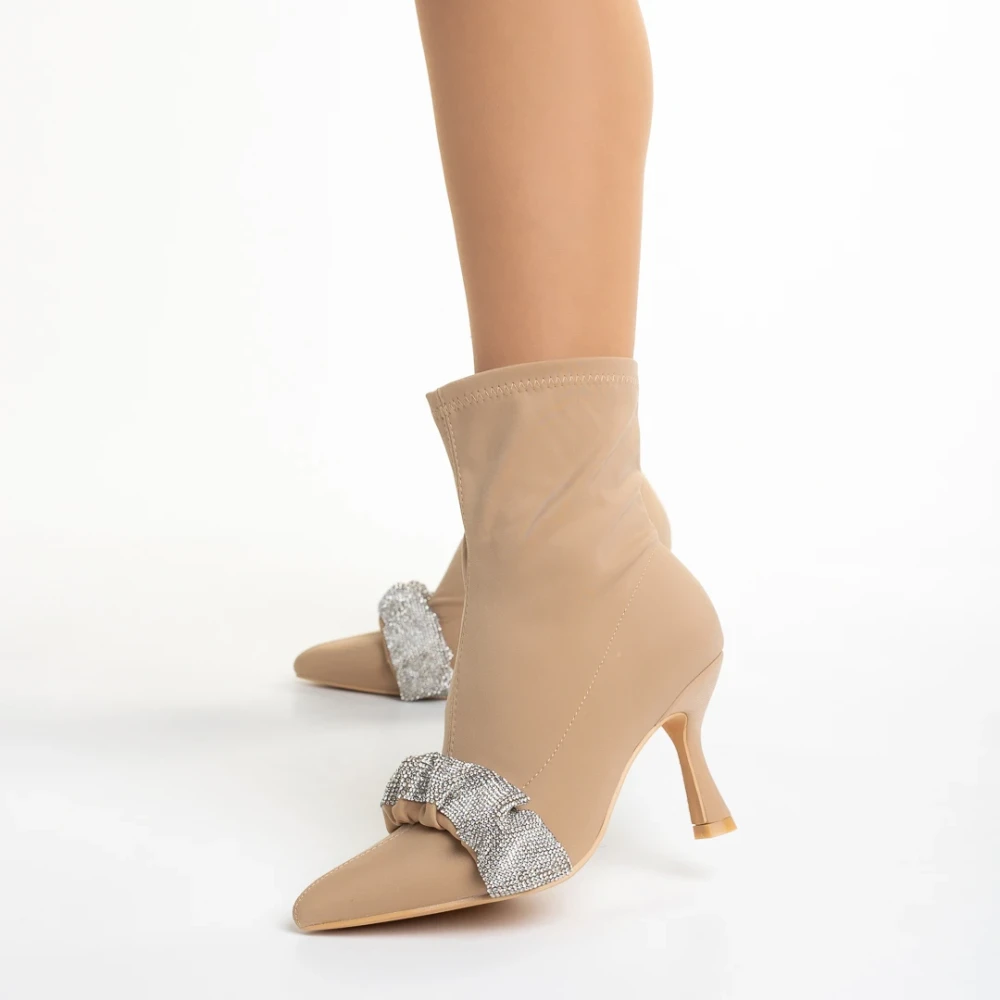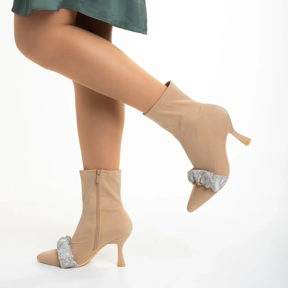 Botine dama bej din material textil cu toc Revonda Detalii produs