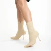 Botine dama bej din material textil Valeda