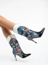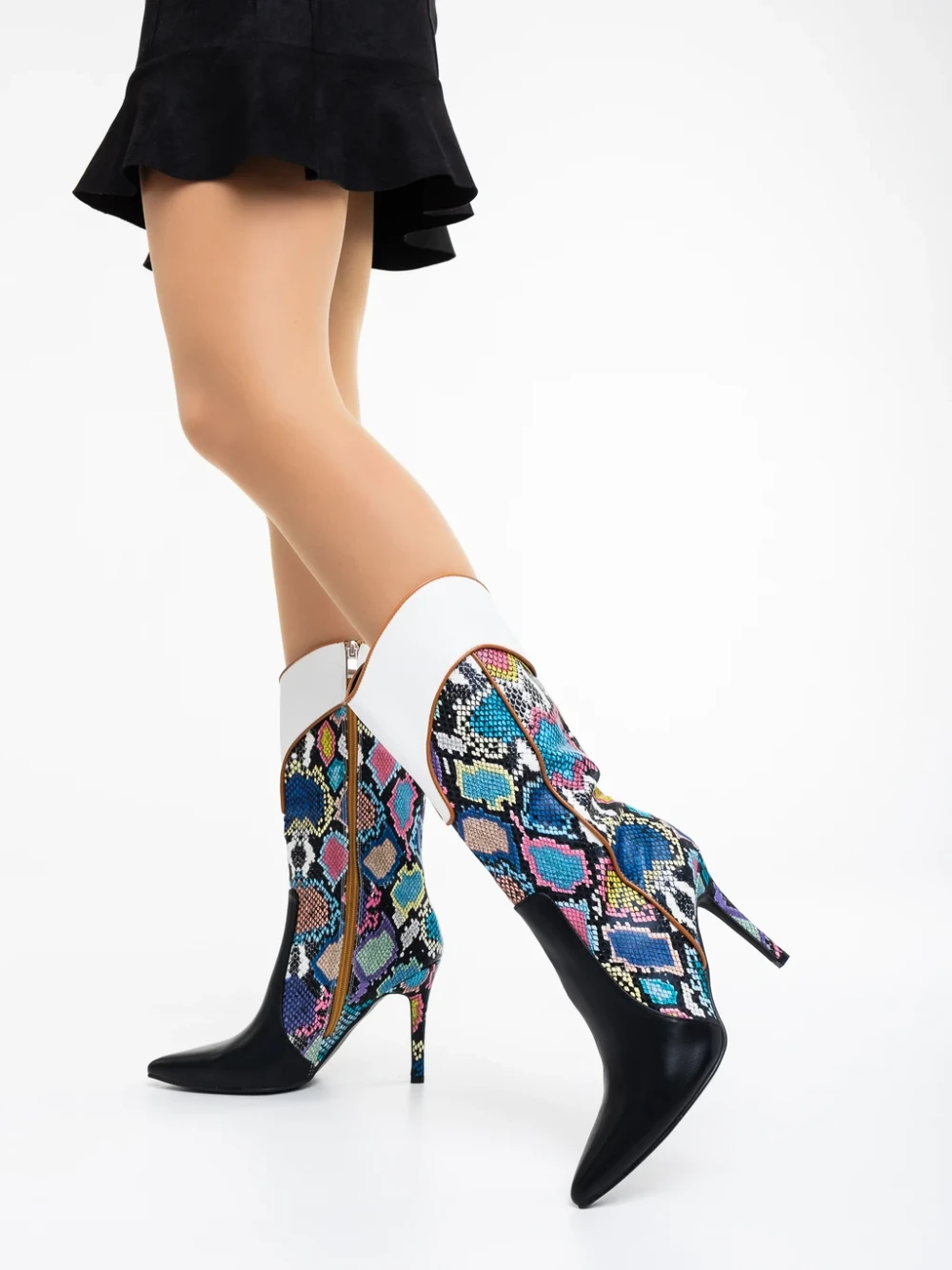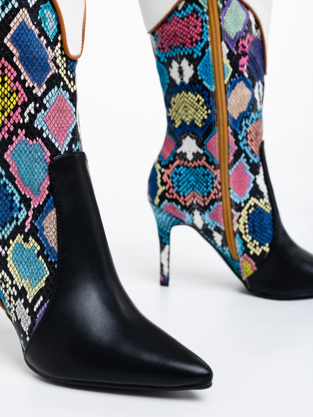 Cizme dama negre cu alb din piele ecologica Eireann Detalii produs
