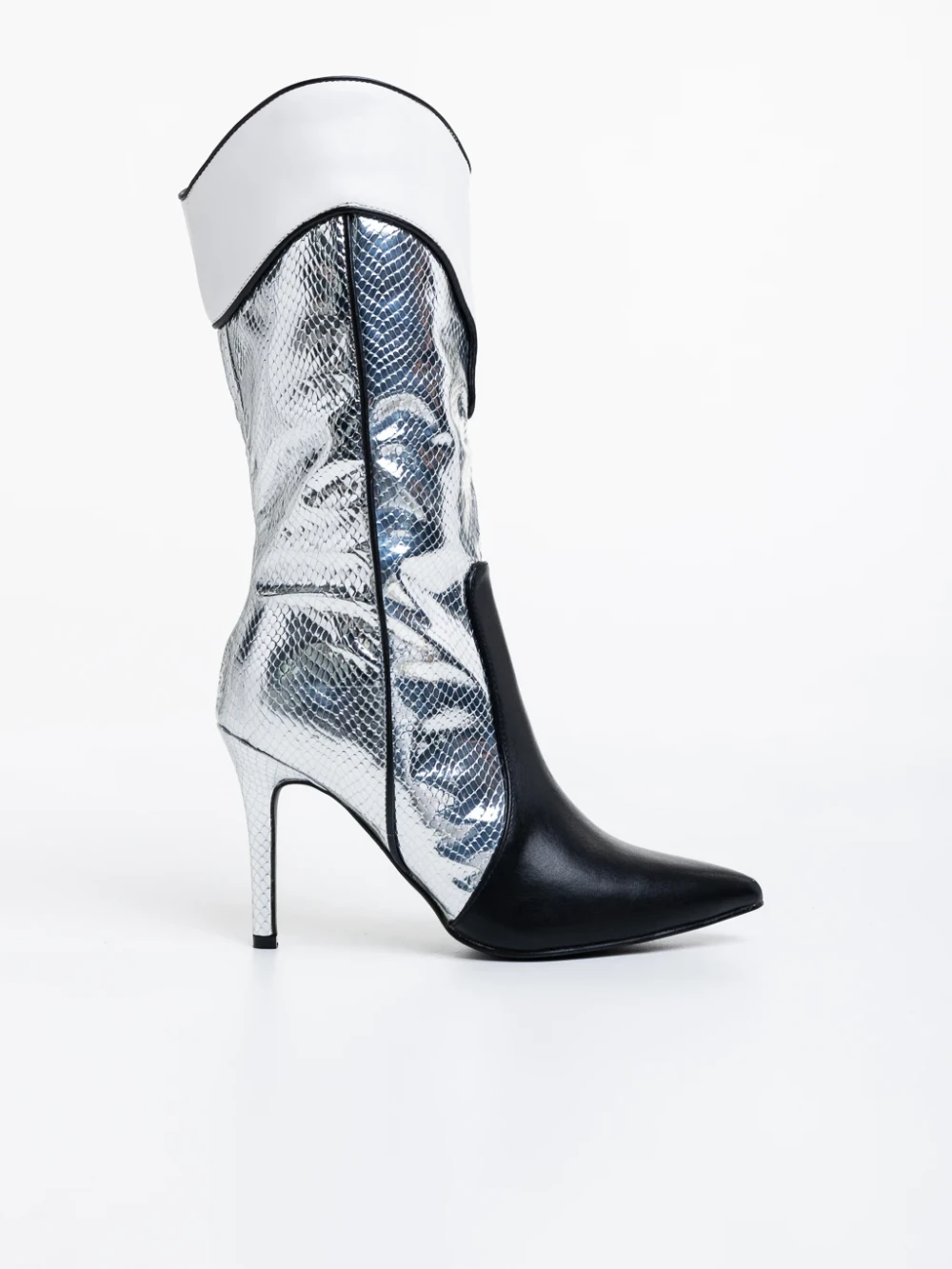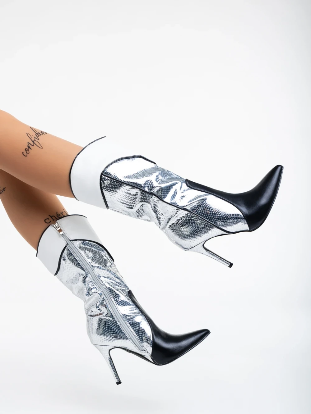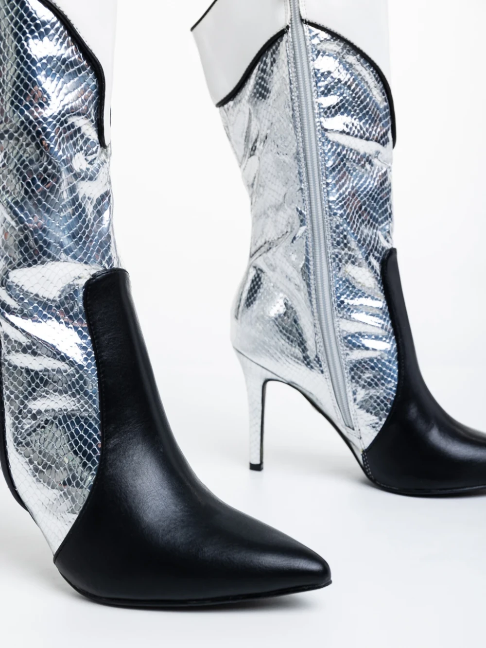 Cizme dama argintiii din piele ecologica Diamontina Detalii produs