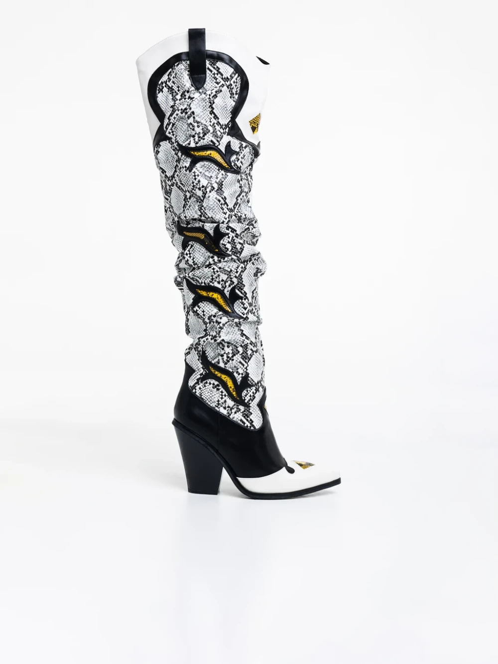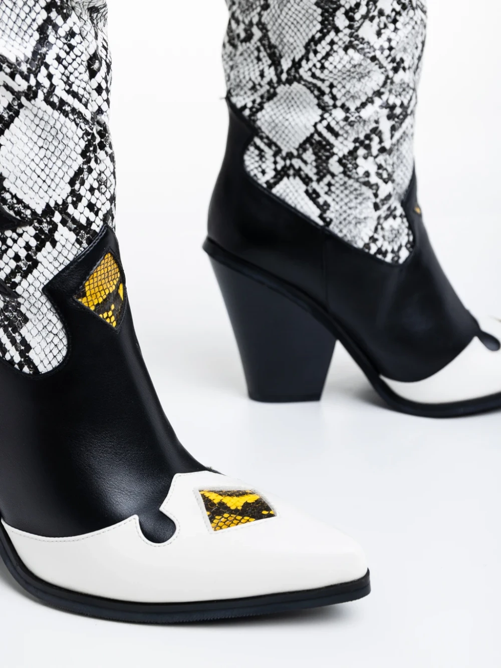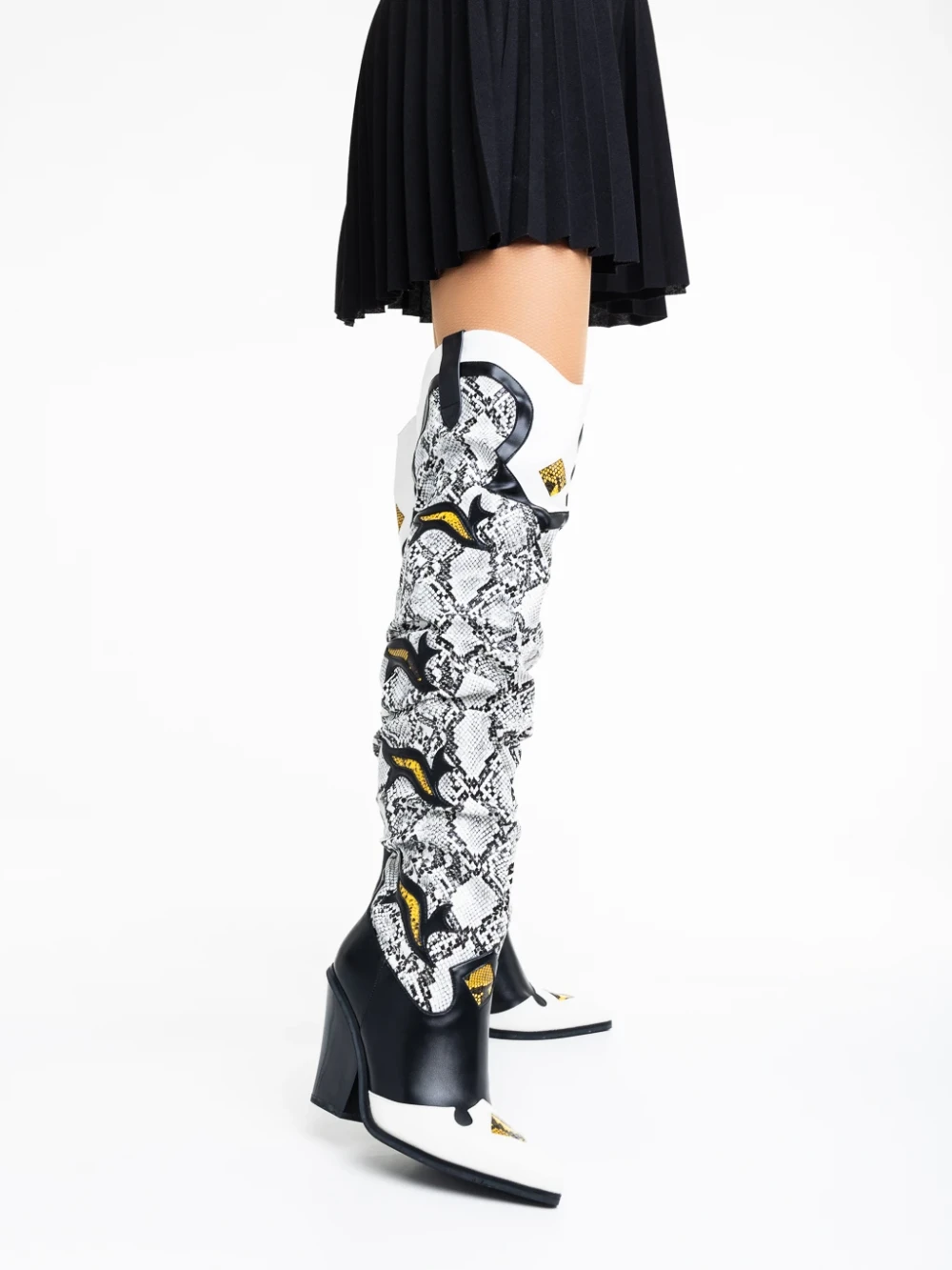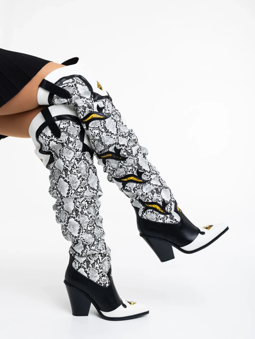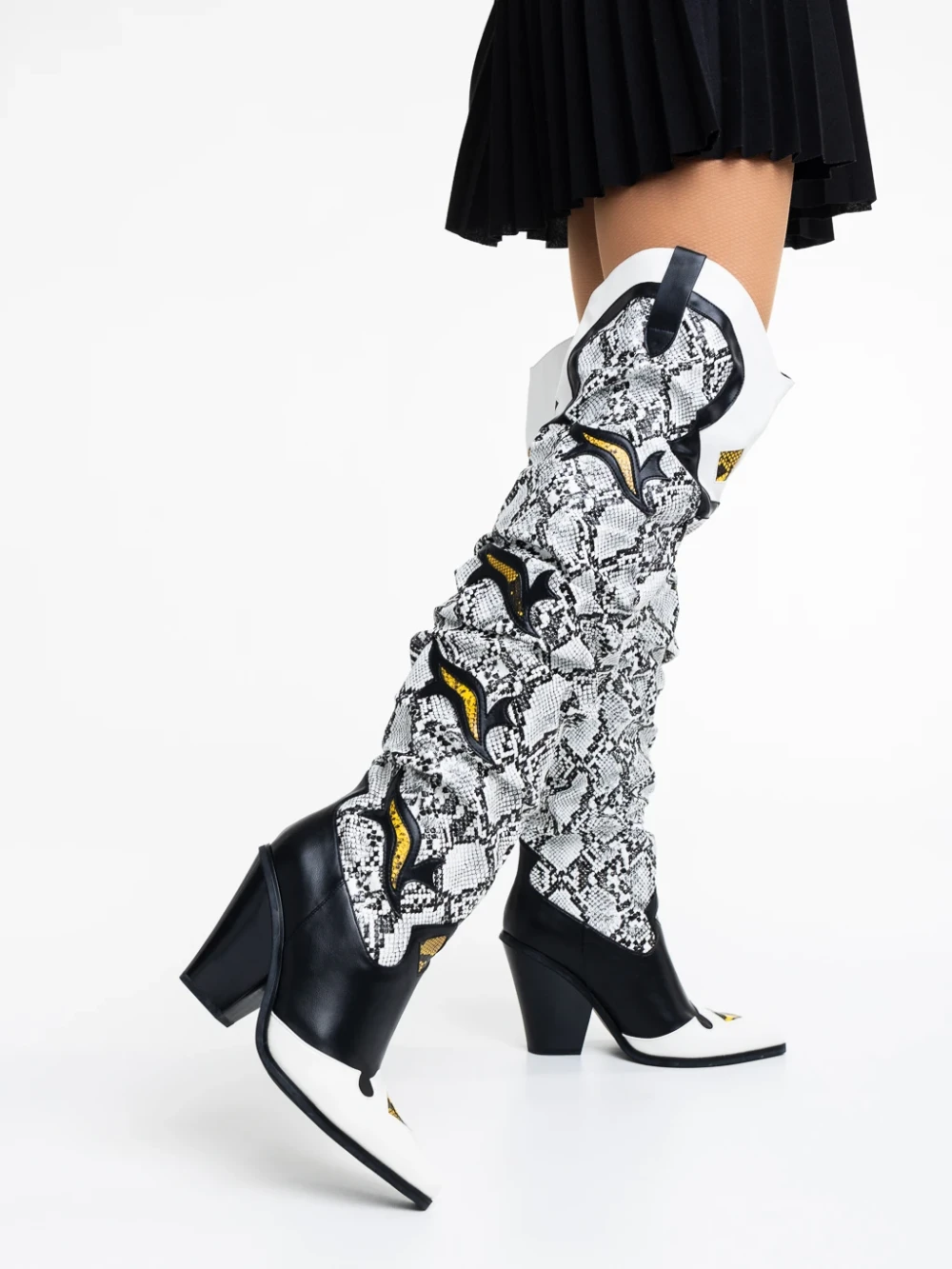 Cizme dama negre cu alb din piele ecologica Miette Detalii produs