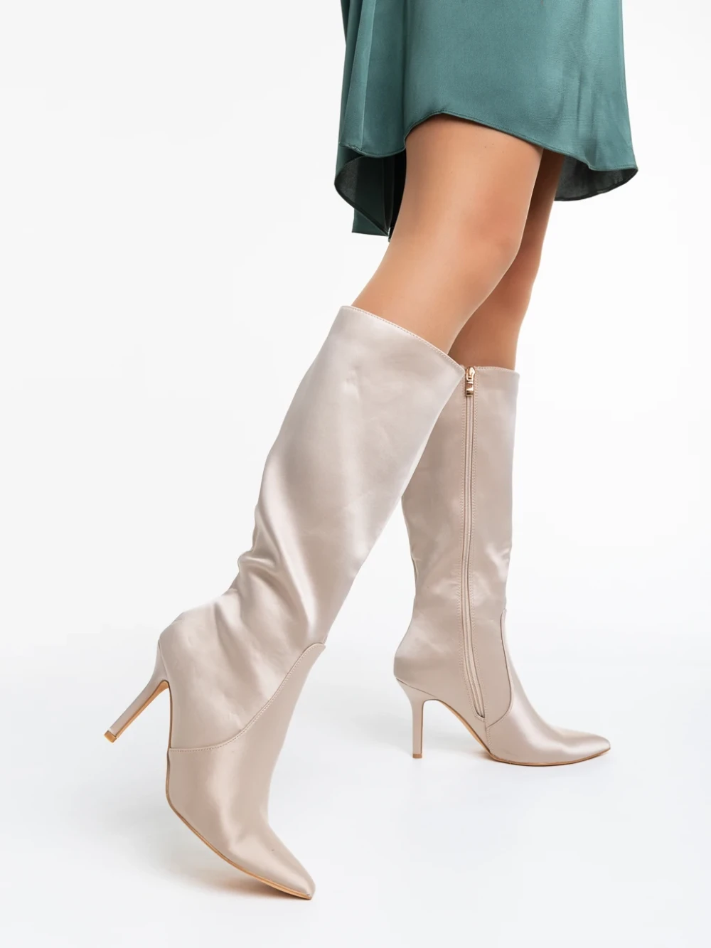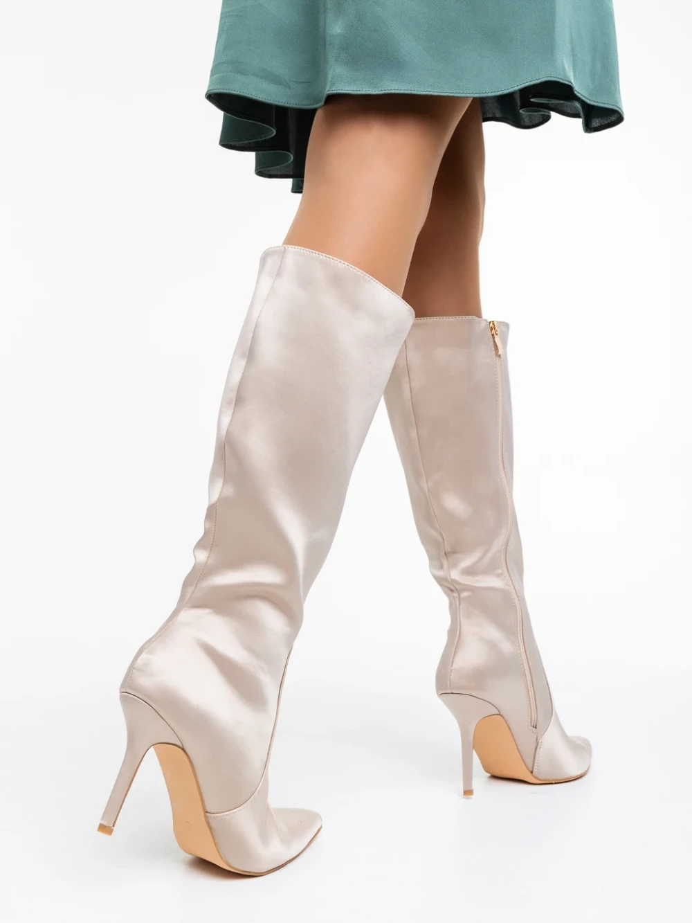 Cizme Dama cu Toc subtire TN-014 Bej Botinelli