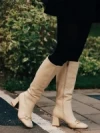 Cizme dama bej deschis din piele ecologica Karlee Detalii produs