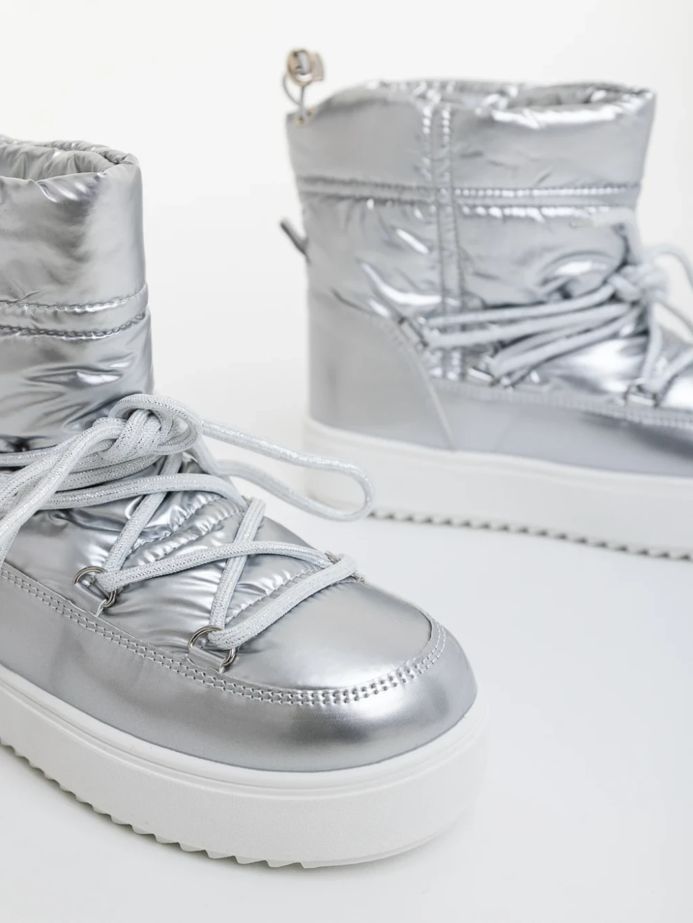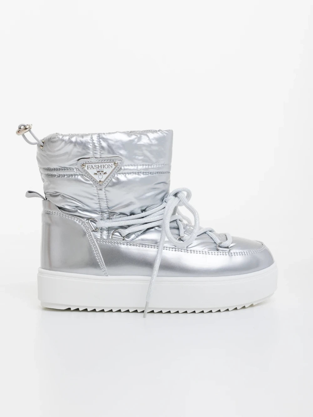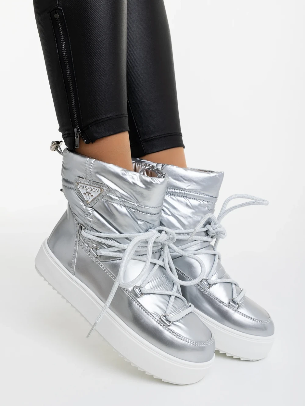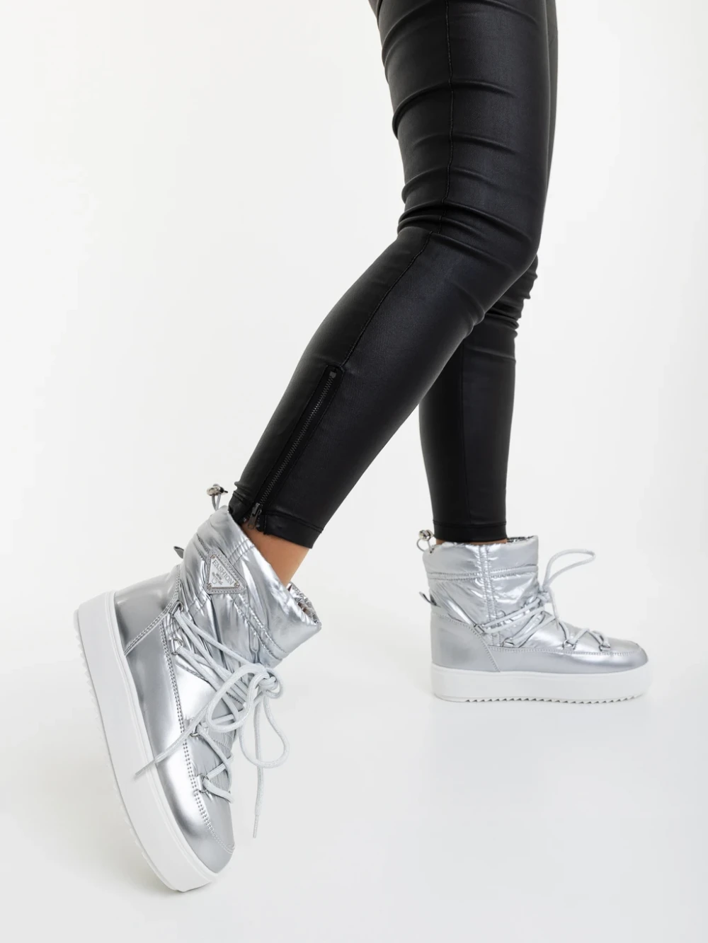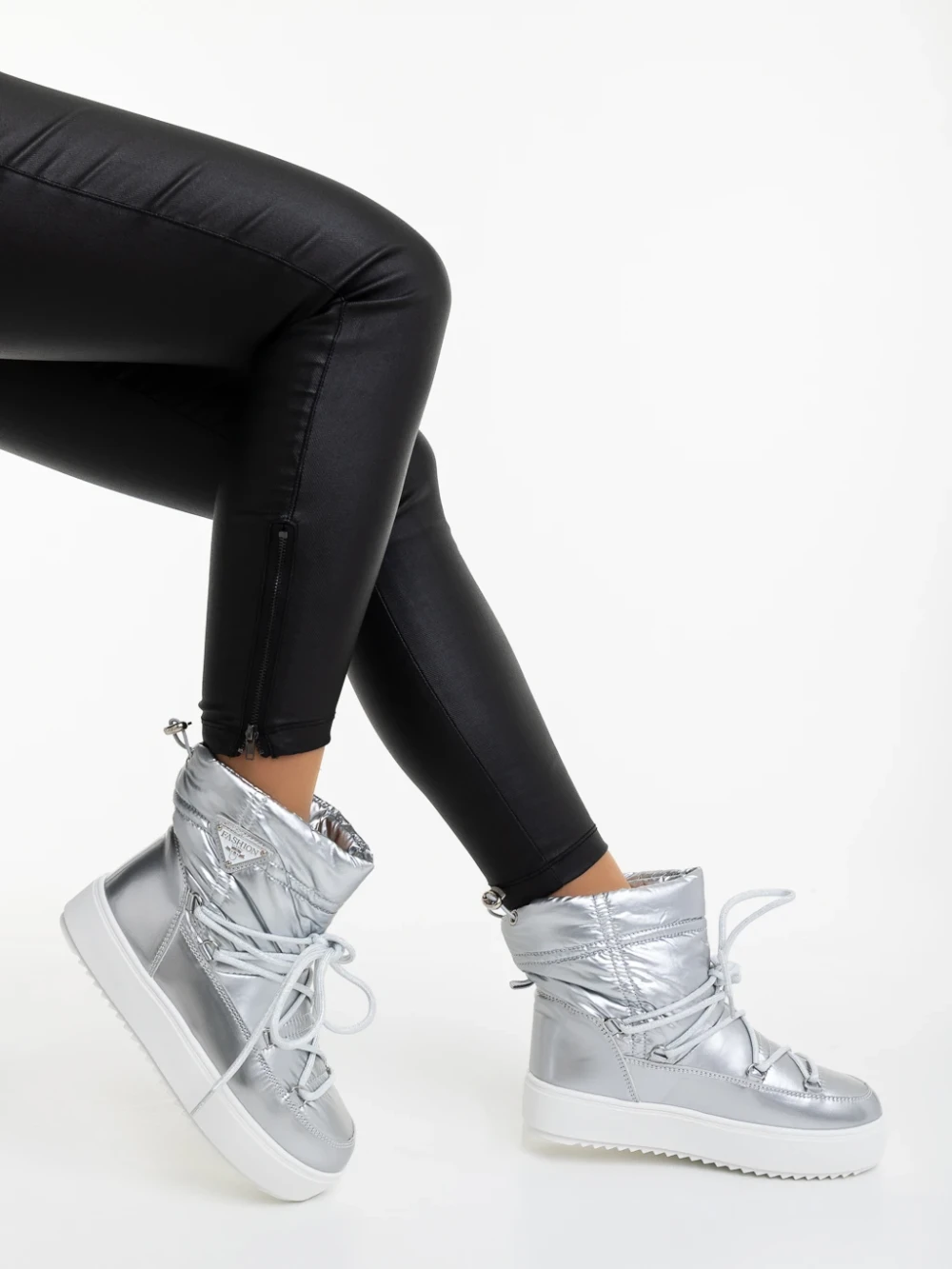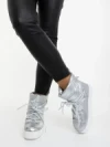 Cizme dama argintii din piele ecologica lacuita si material sintetic Galena Detalii produs