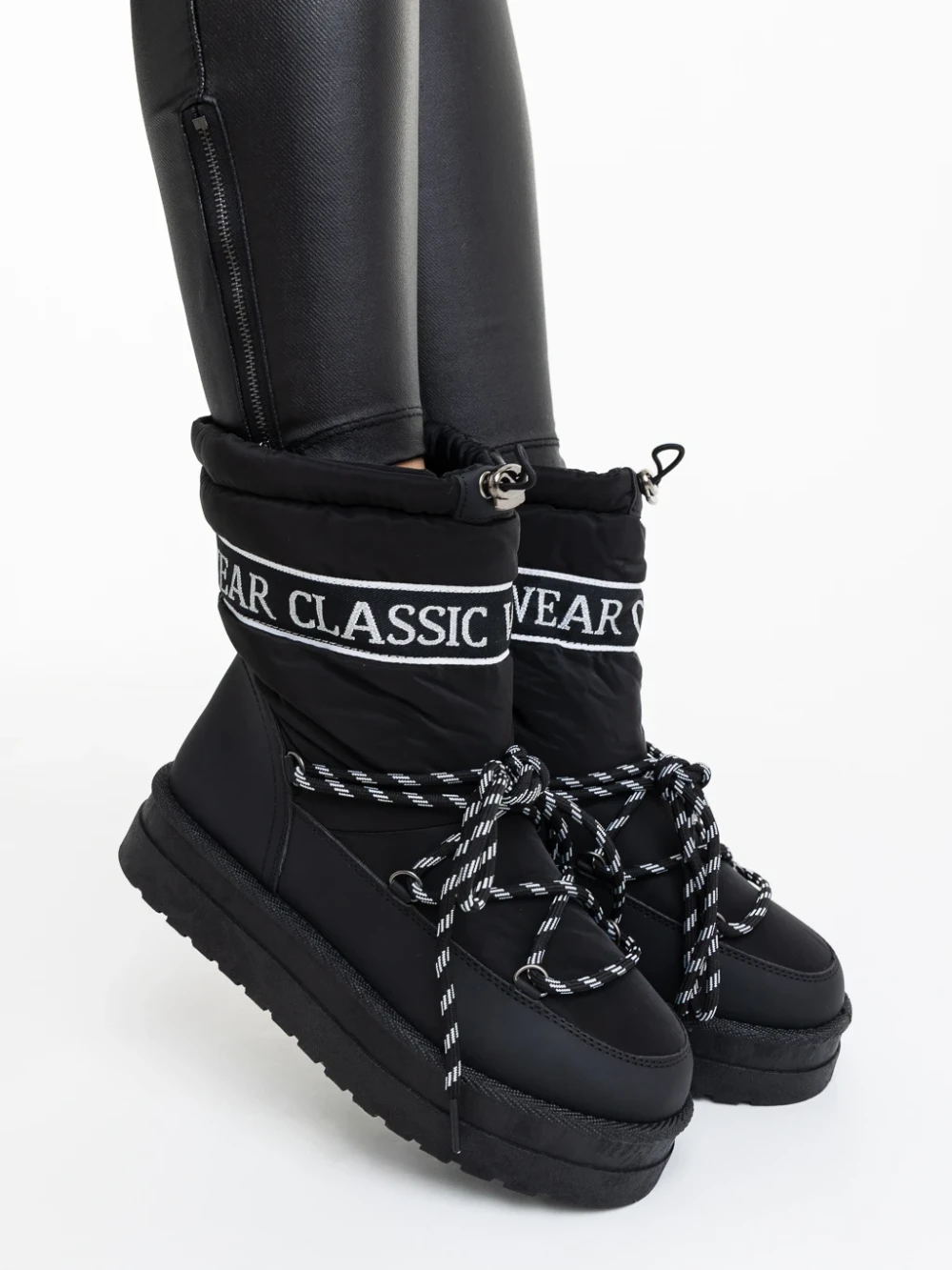 Cizme dama negre din piele ecologica si material textil Nicova Detalii produs