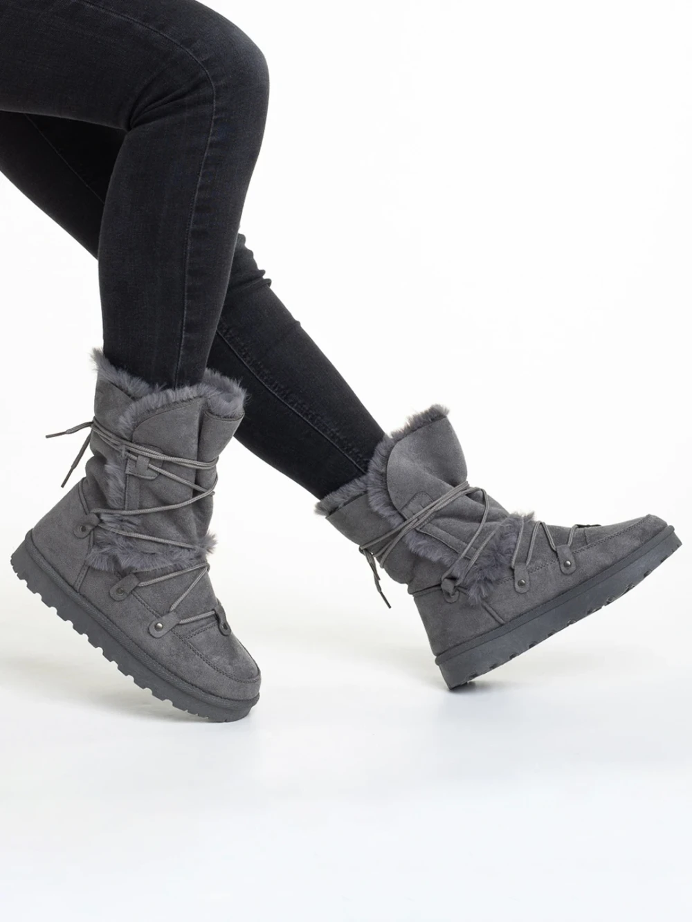 Cizme dama gri din material textil Phyllis Detalii produs