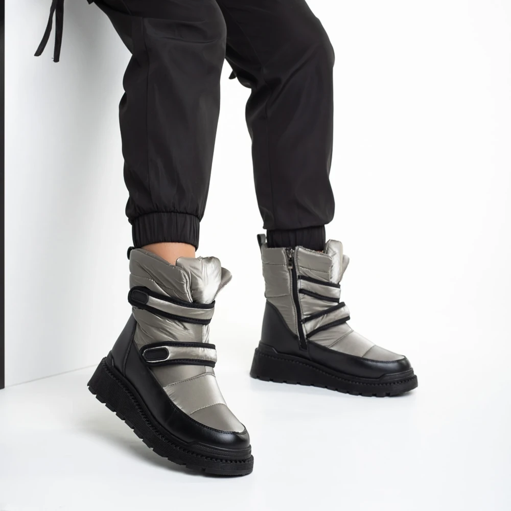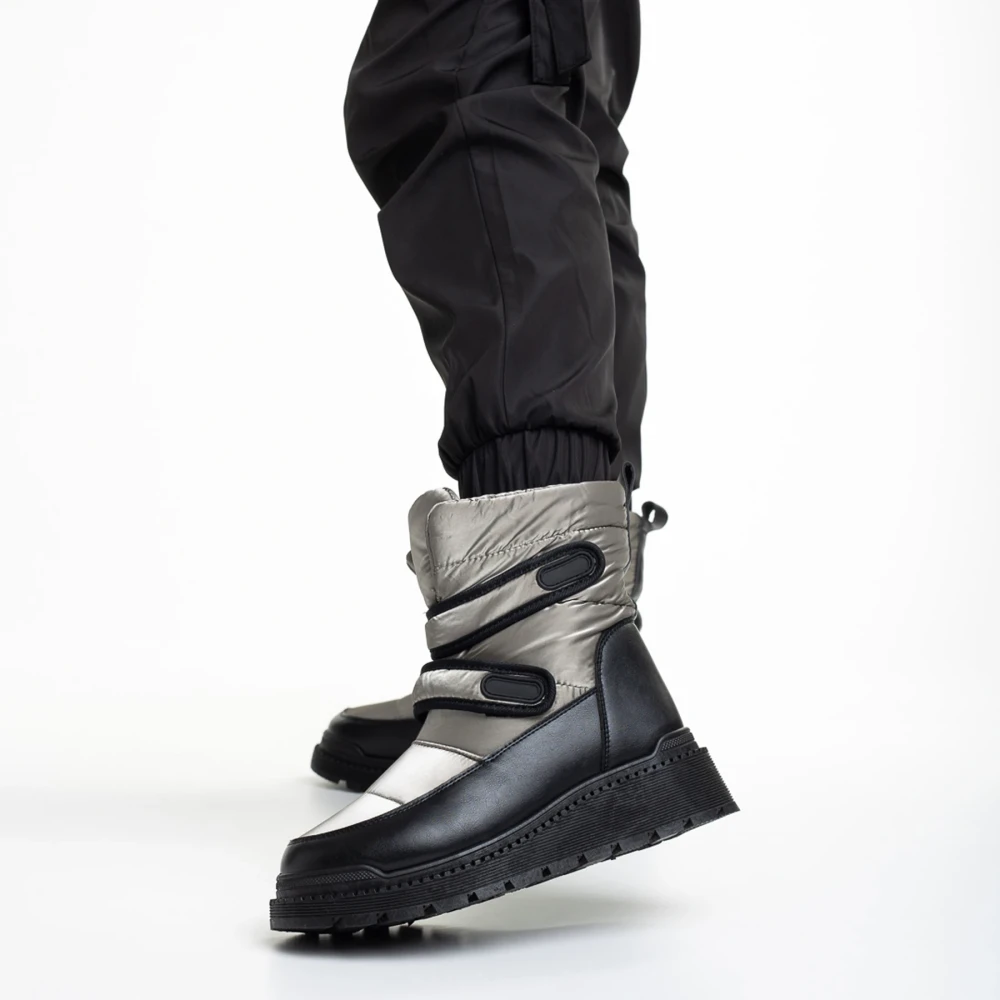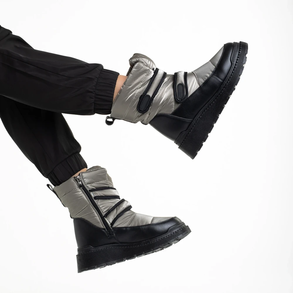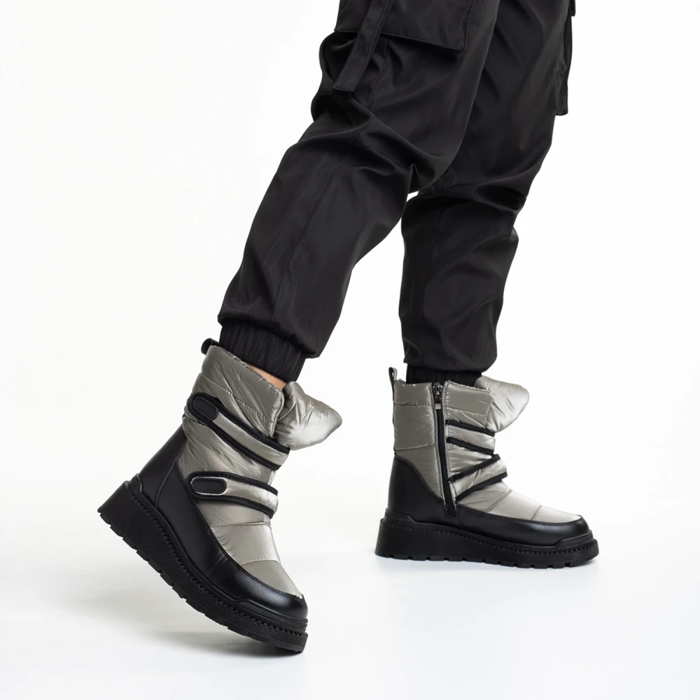 Cizme dama gri inchis din piele ecolofica si material textil Xiomara Detalii produs