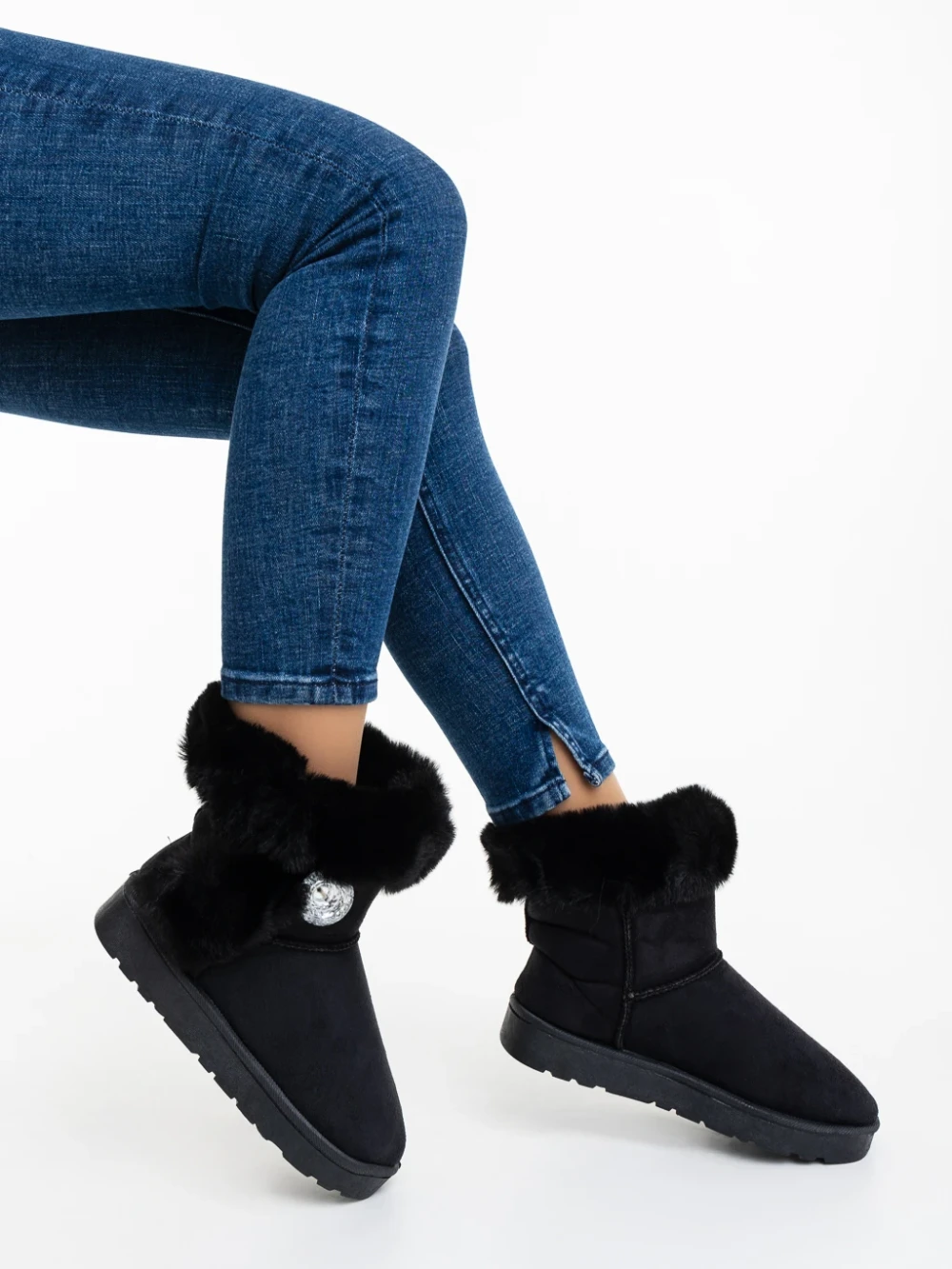 Cizme dama negre din material textil Hermina Detalii produs