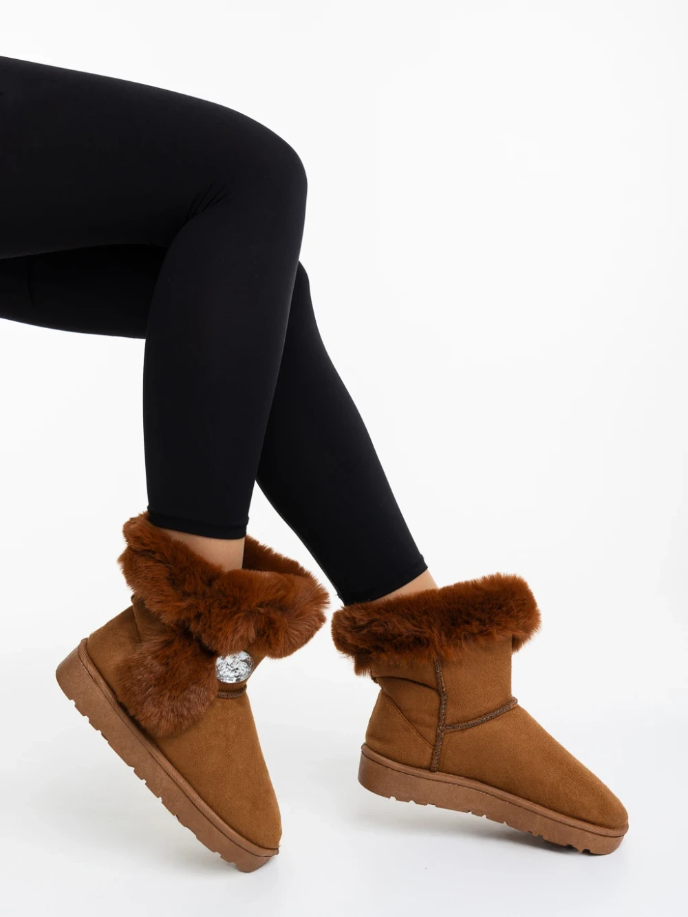 Cizme dama camel din material textil Hermina Detalii produs