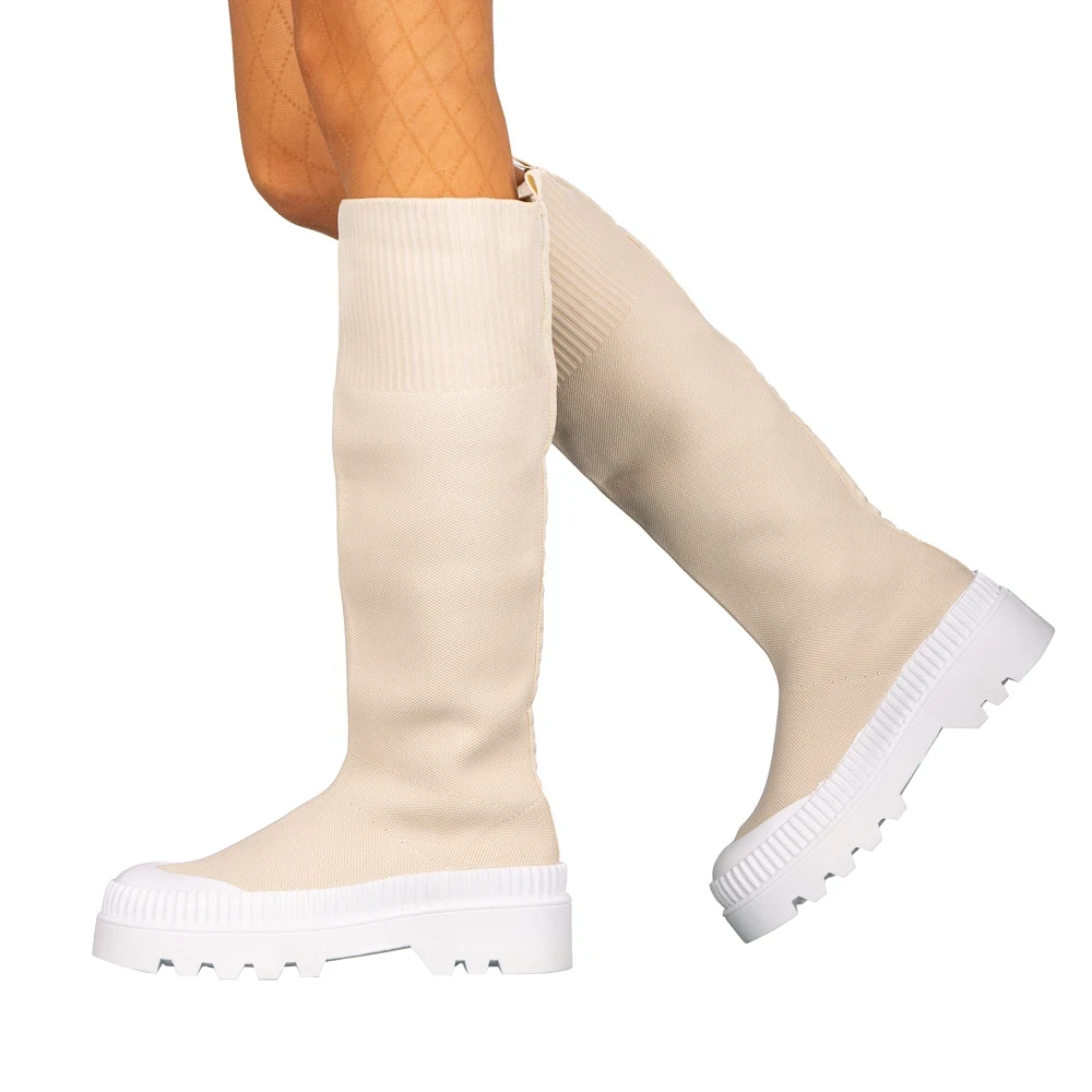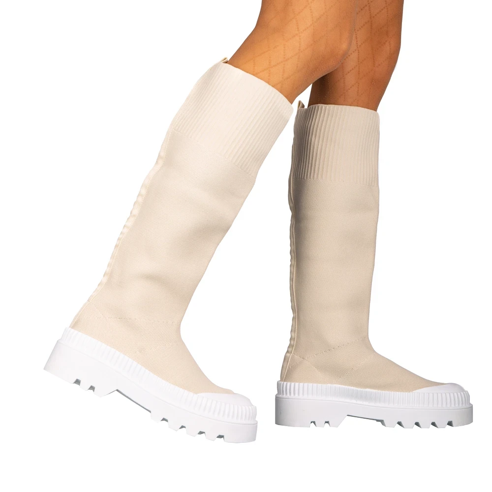 Cizme Dama cu Platforma 3WL18 Bej | Mei
