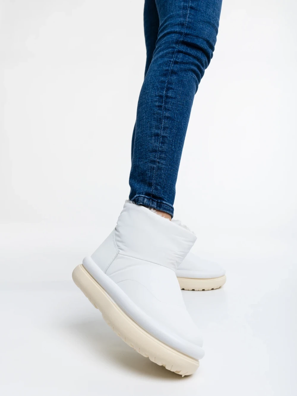 Cizme dama albe din piele ecologica si material textil Leola Detalii produs