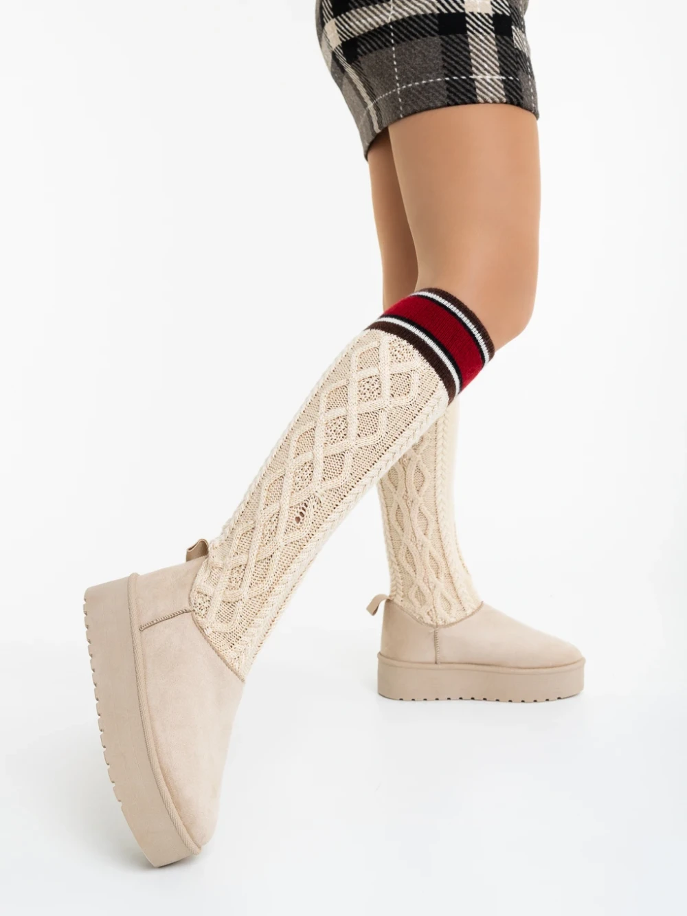 Cizme dama bej din material textil Talora Detalii produs