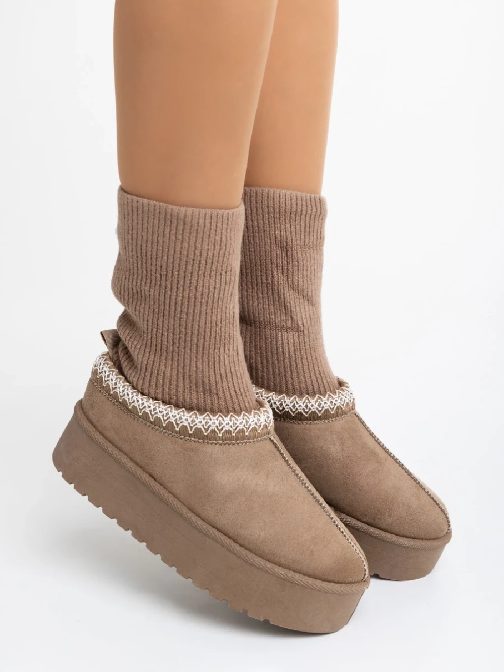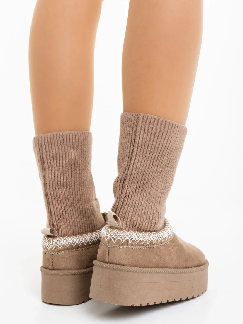 Cizme dama bej inchis din material textil Diaza Detalii produs