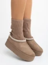 Cizme dama bej din material textil Camella