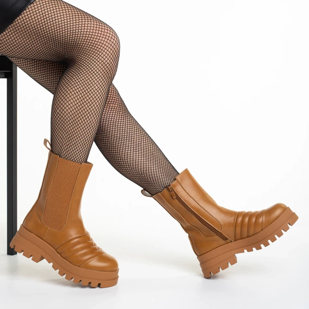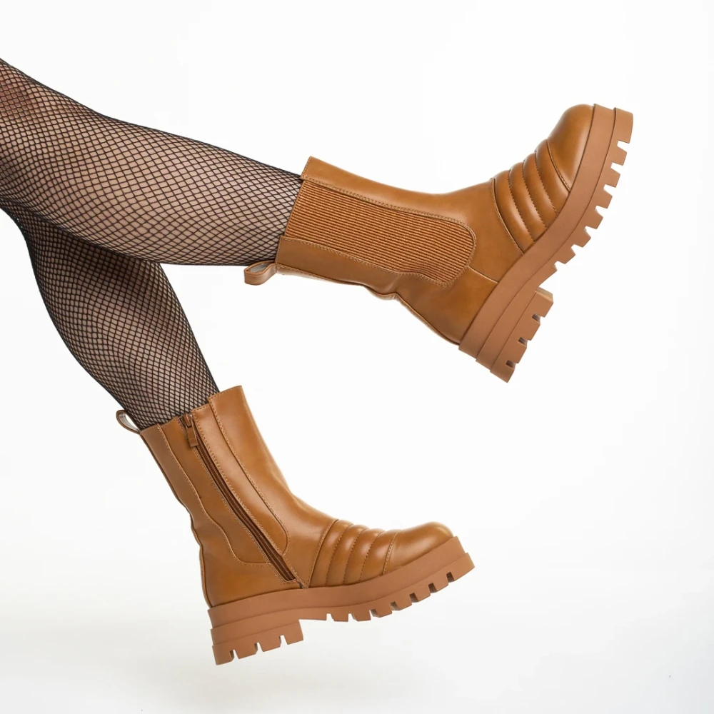 Cizme dama camel din piele ecologica Lovena Detalii produs