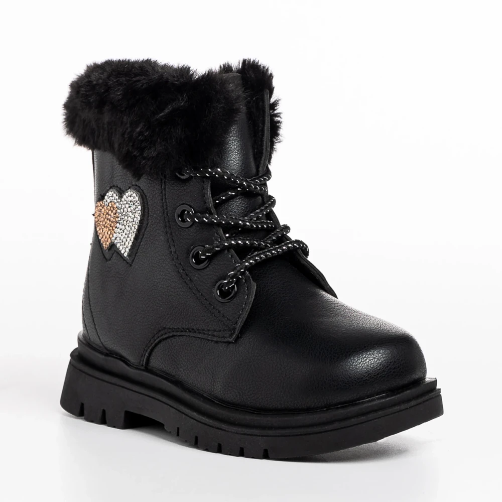 Cizme copii negre din piele ecologica Sedona Detalii produs