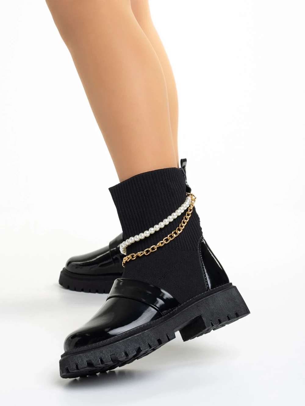 Cizme dama negre din piele ecologica lacuita si material textil Caralyn
