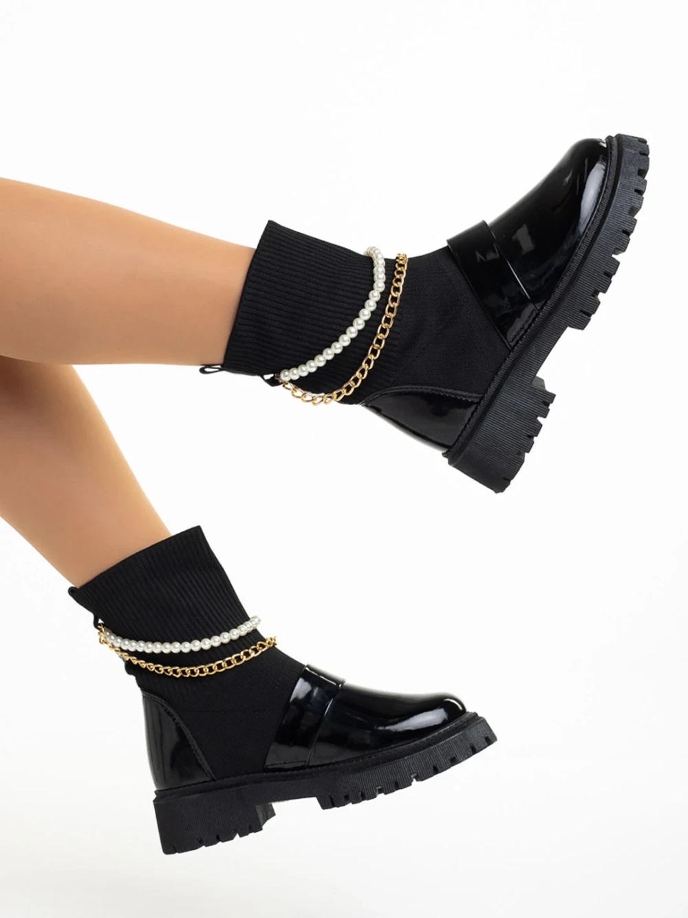 Cizme dama negre din piele ecologica lacuita si material textil Caralyn Detalii produs