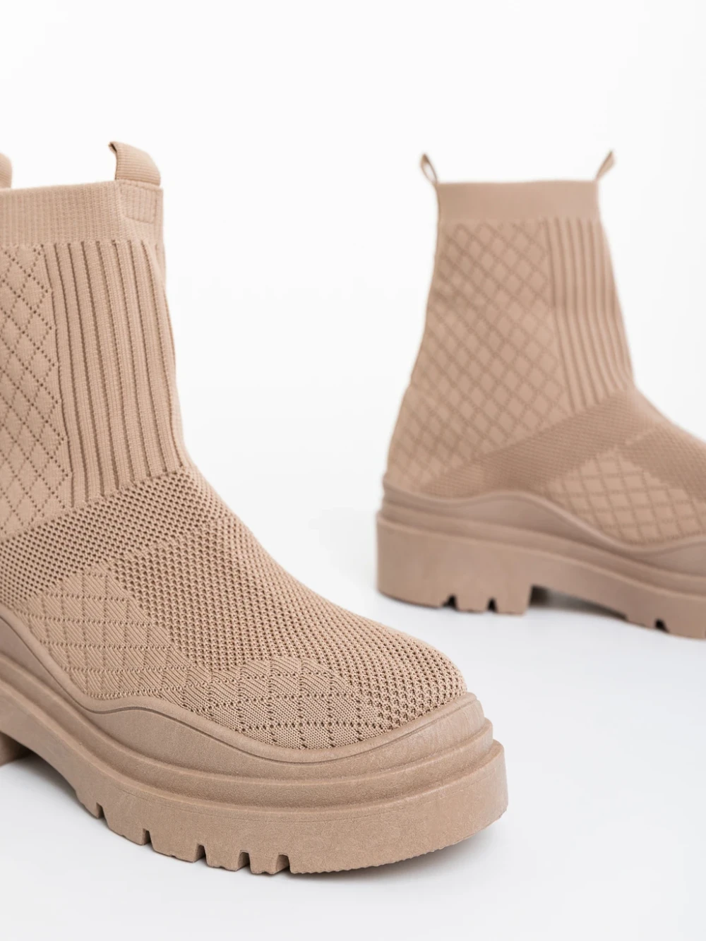 Cizme dama bej din material textil Verria