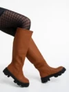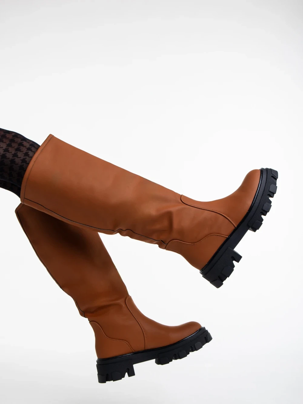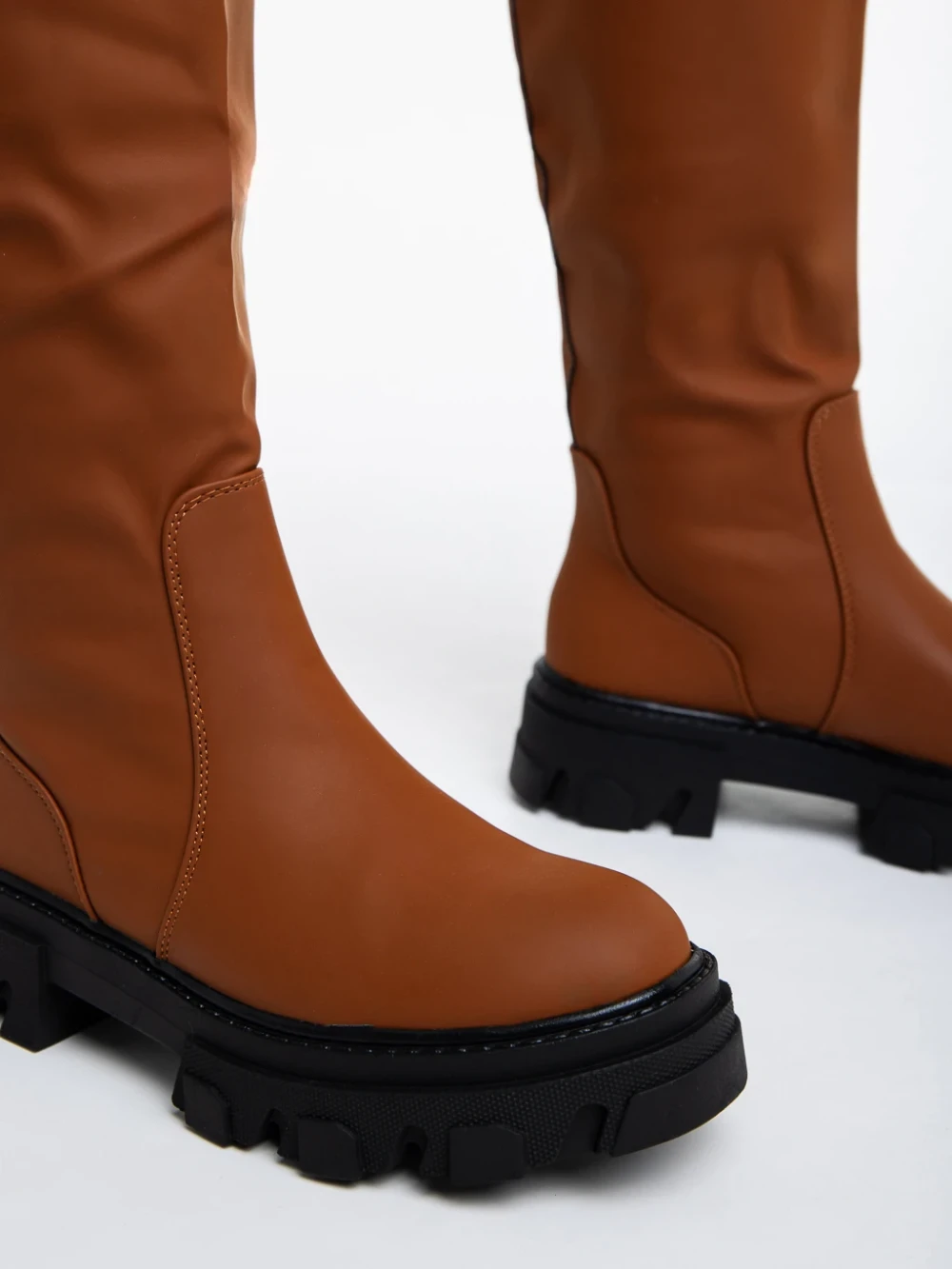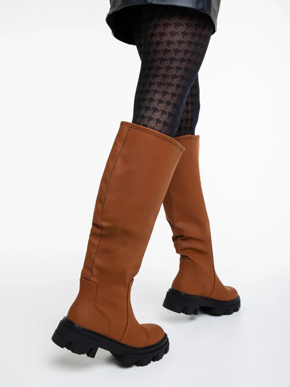 Cizme dama maro deschis din piele ecologica Mukta Detalii produs