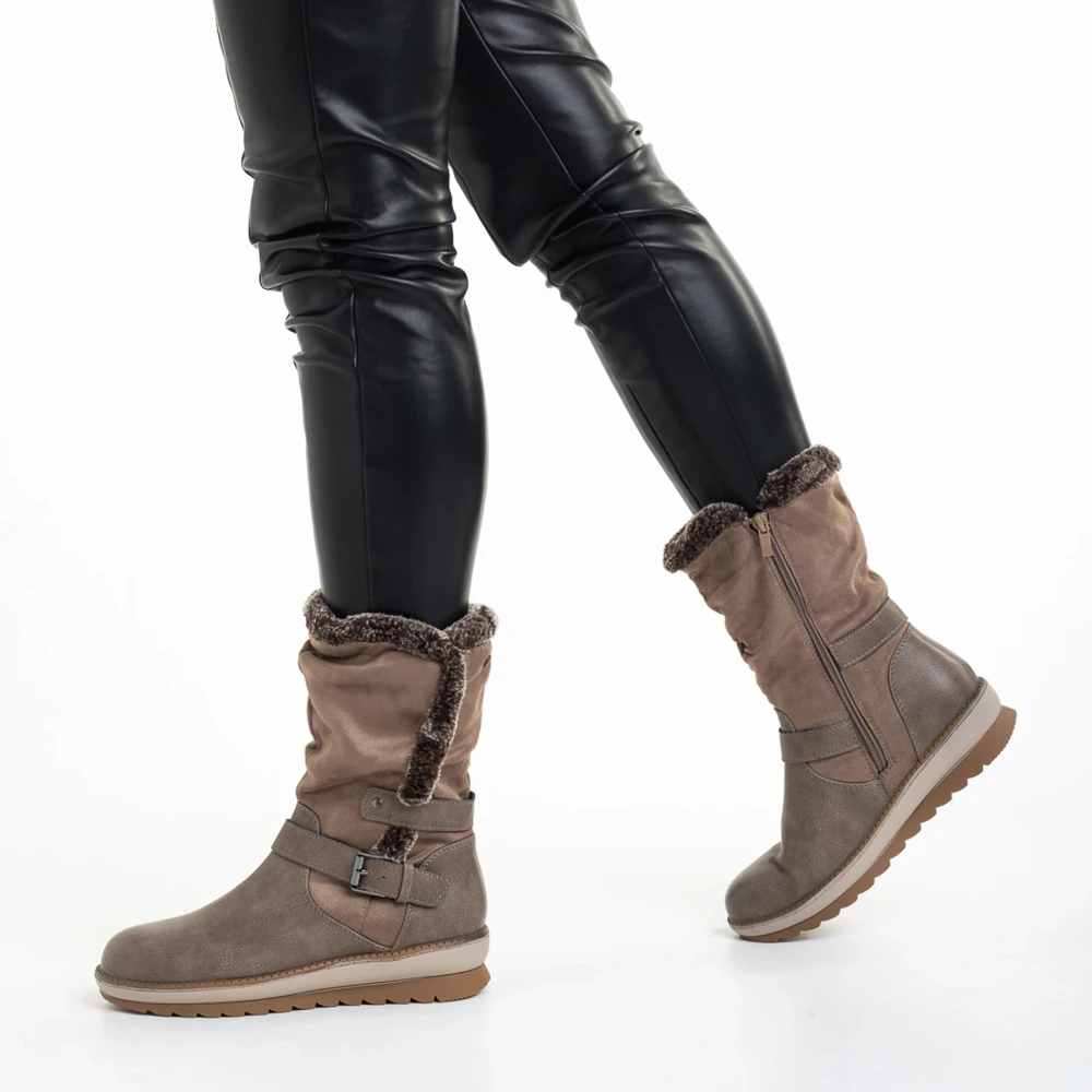 Cizme dama bej din piele ecologica si material textil Collete Detalii produs