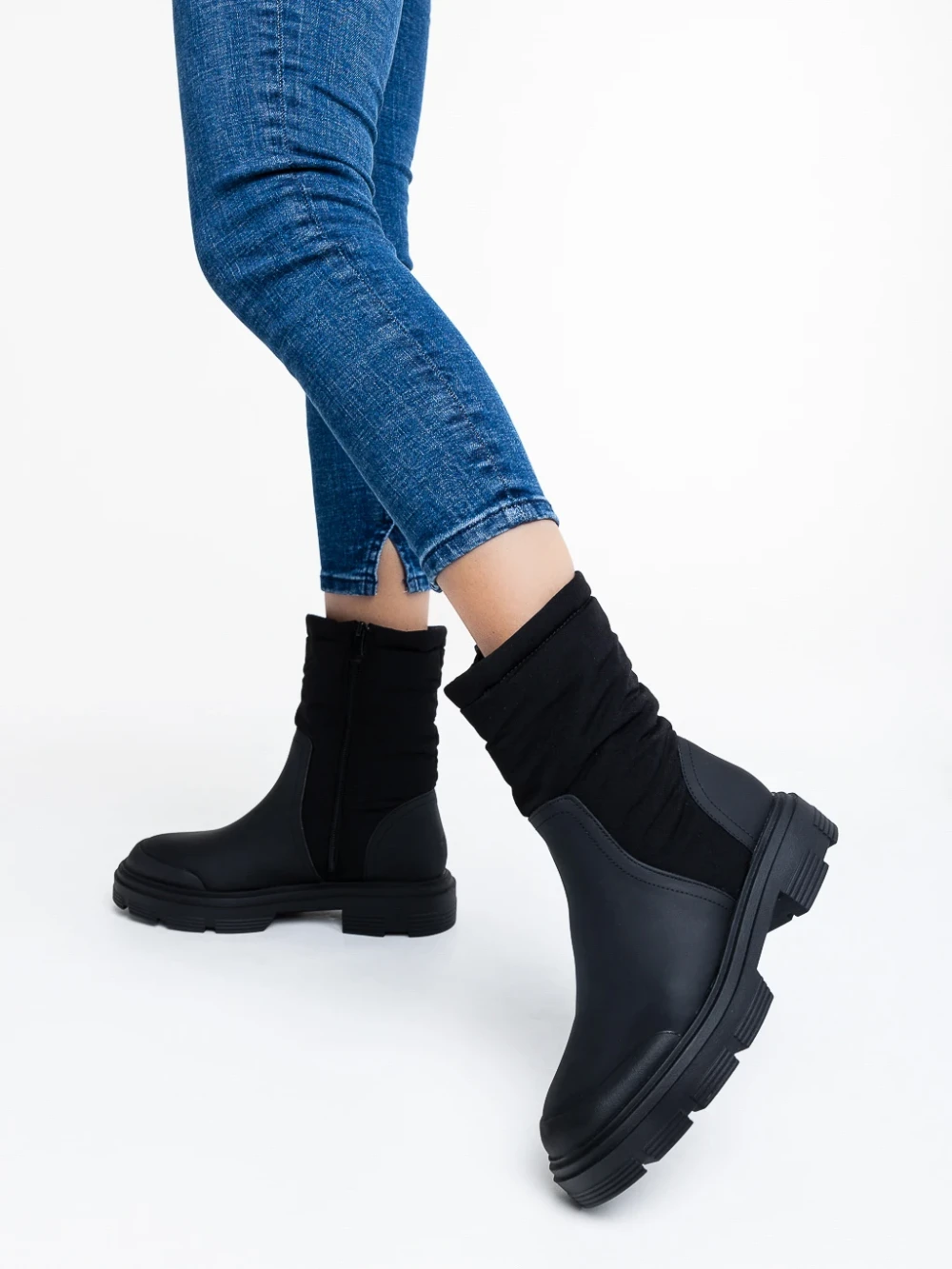 Cizme dama negre din piele ecologica si material textil Nermina Detalii produs