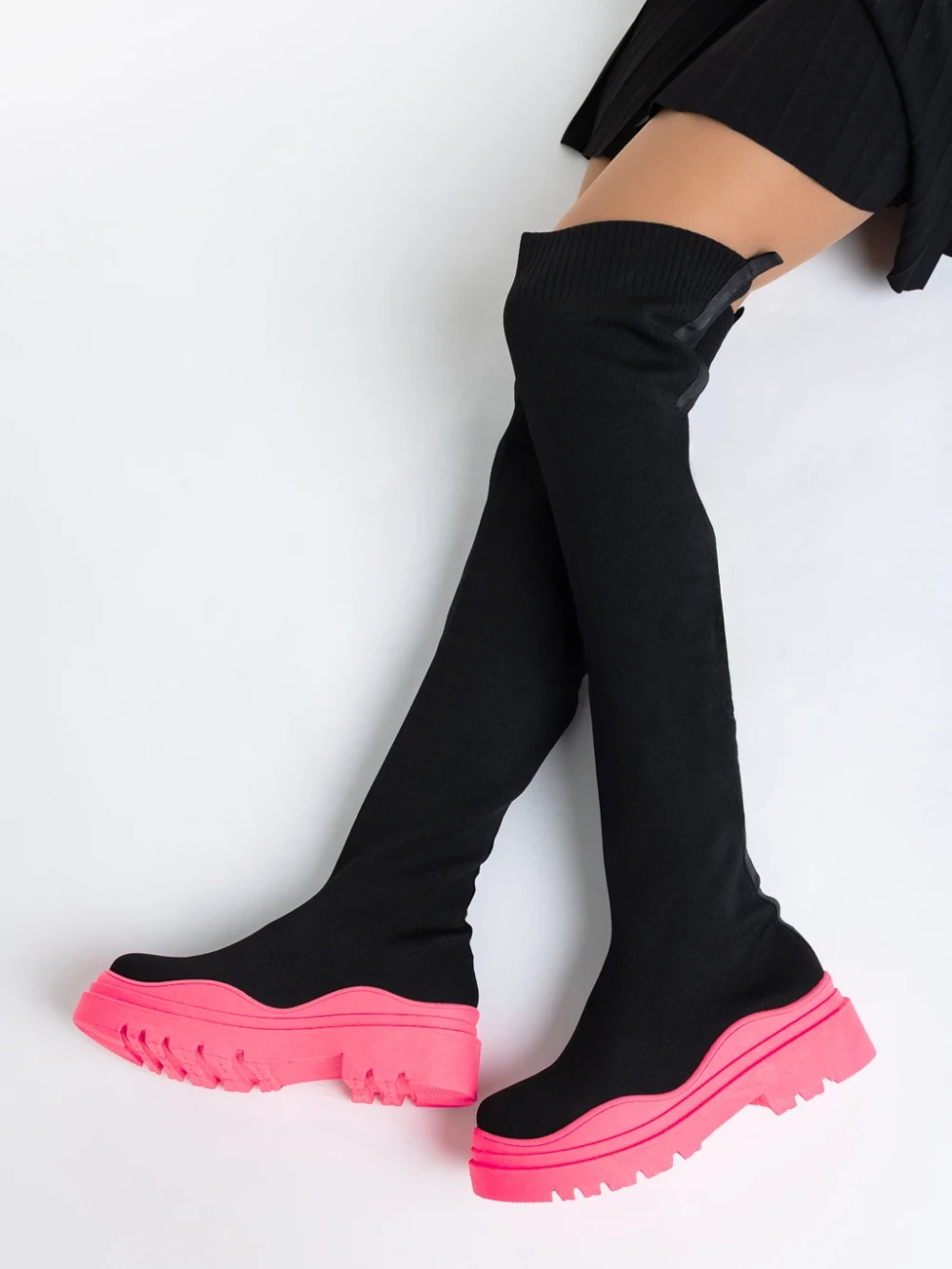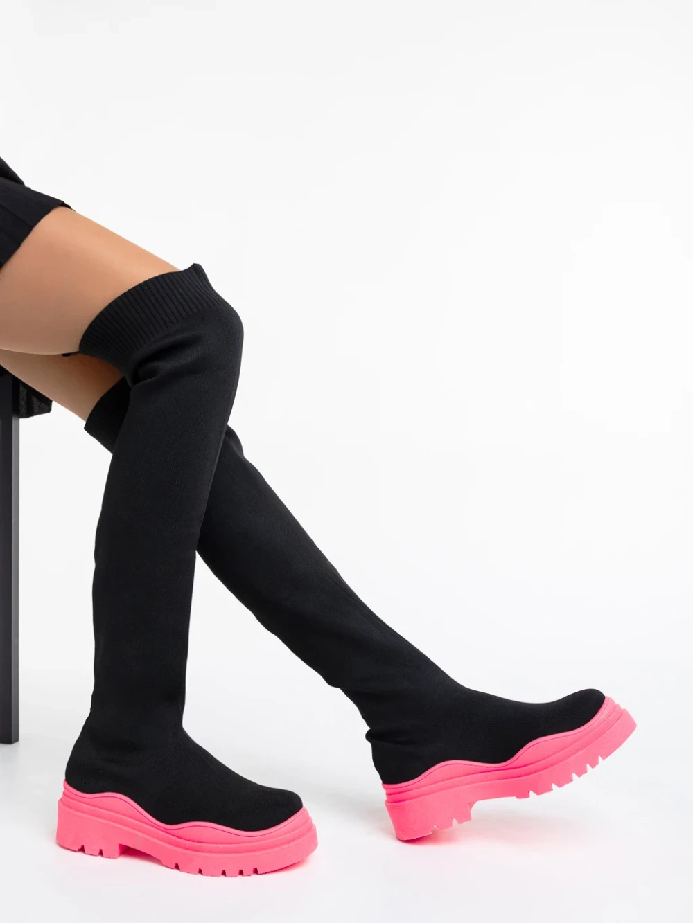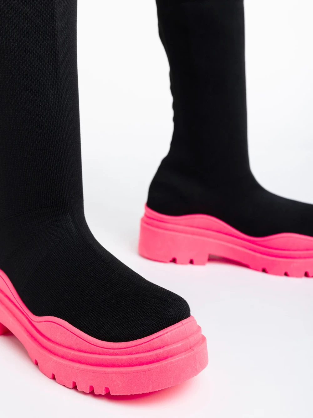 Cizme dama negre cu fucsia din material textil Lesya Detalii produs