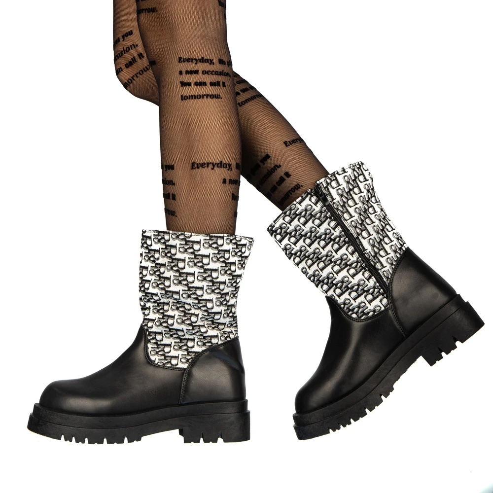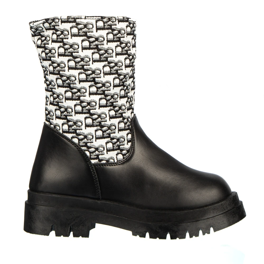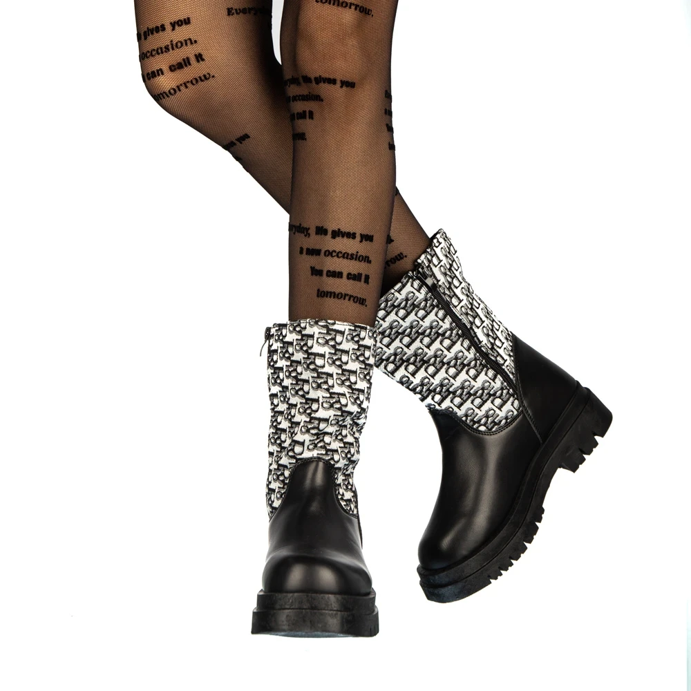 Cizme dama negre cu fucsia din material textil Lesya