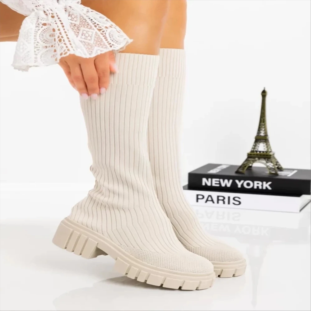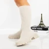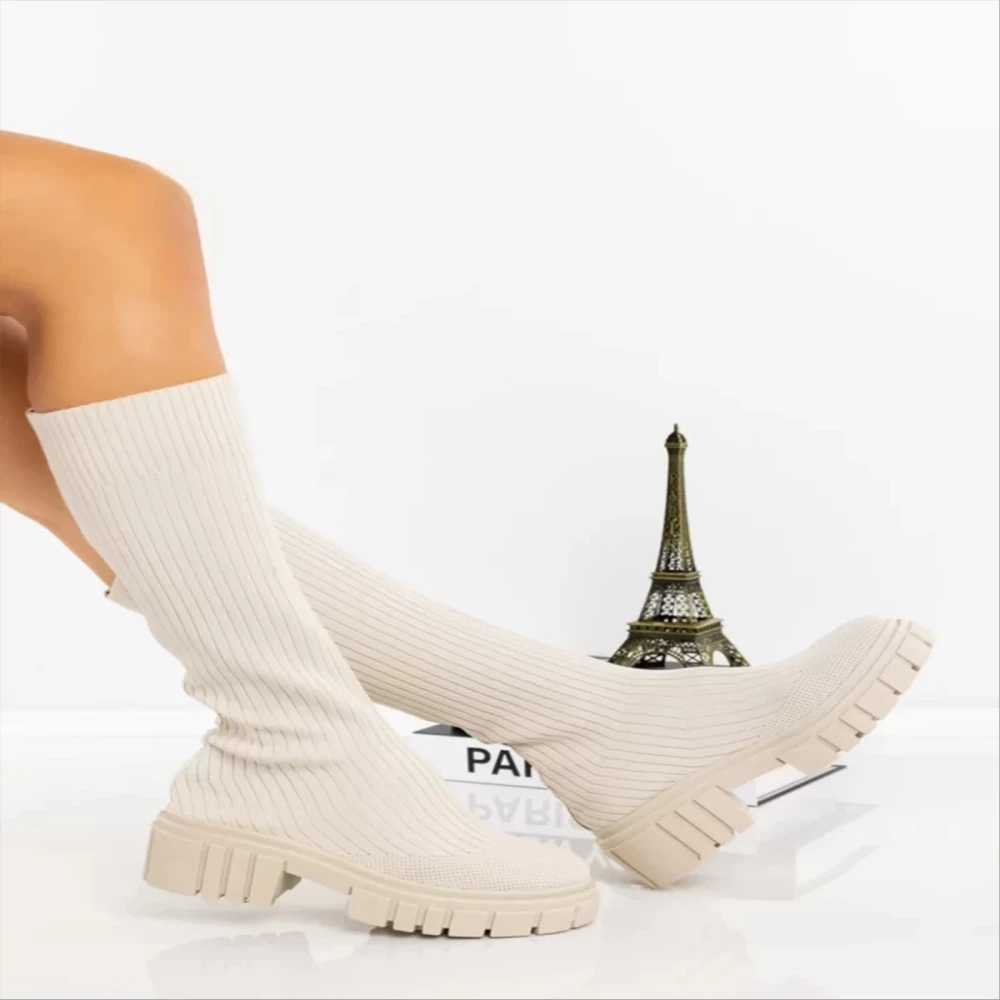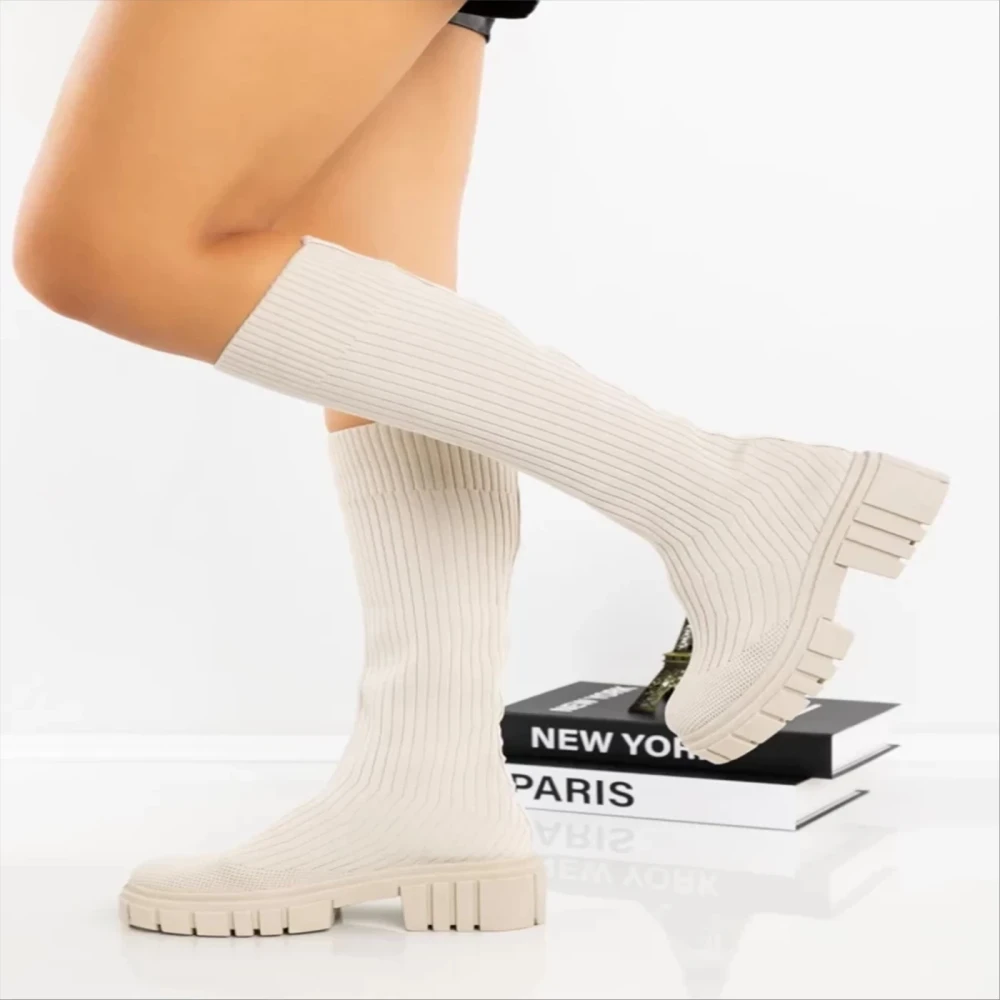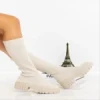 Cizme dama bej din material textil Desmi