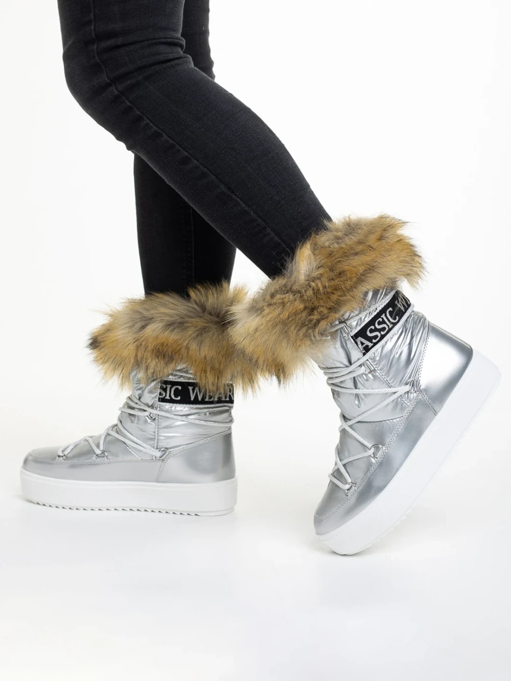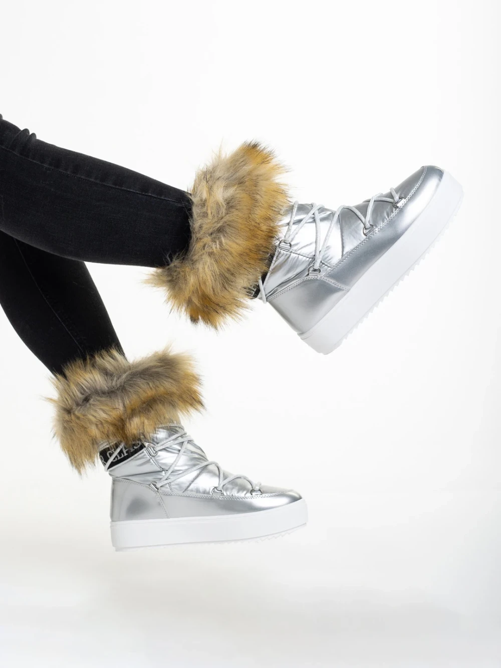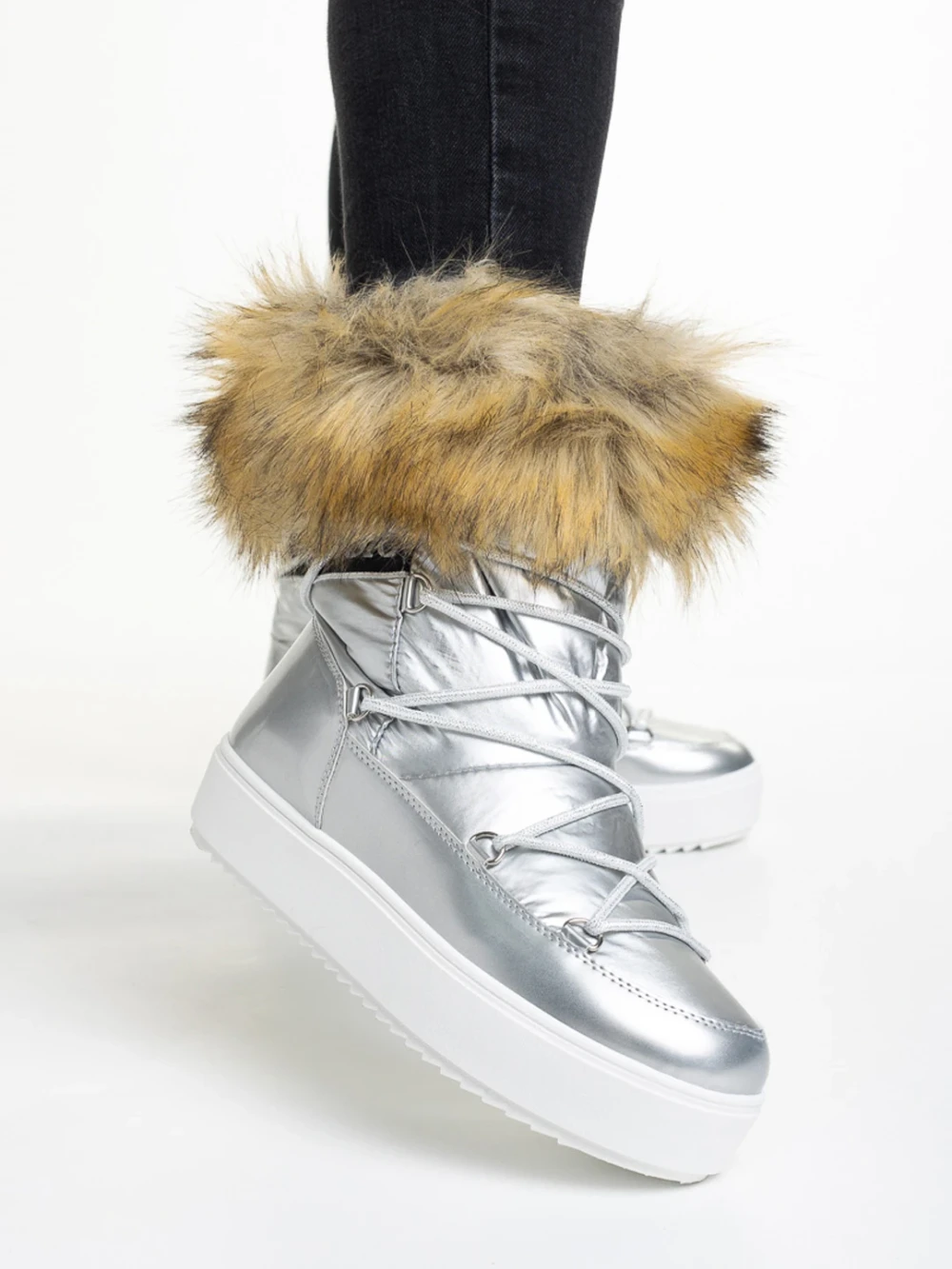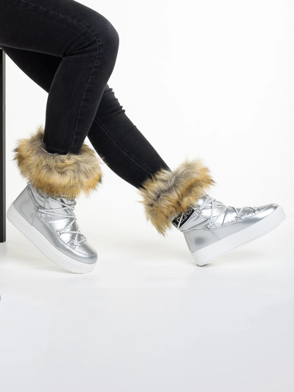 Cizme dama argintIi din material textil Rosalba Detalii produs