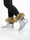 Cizme dama argintIi din material textil Rosalba