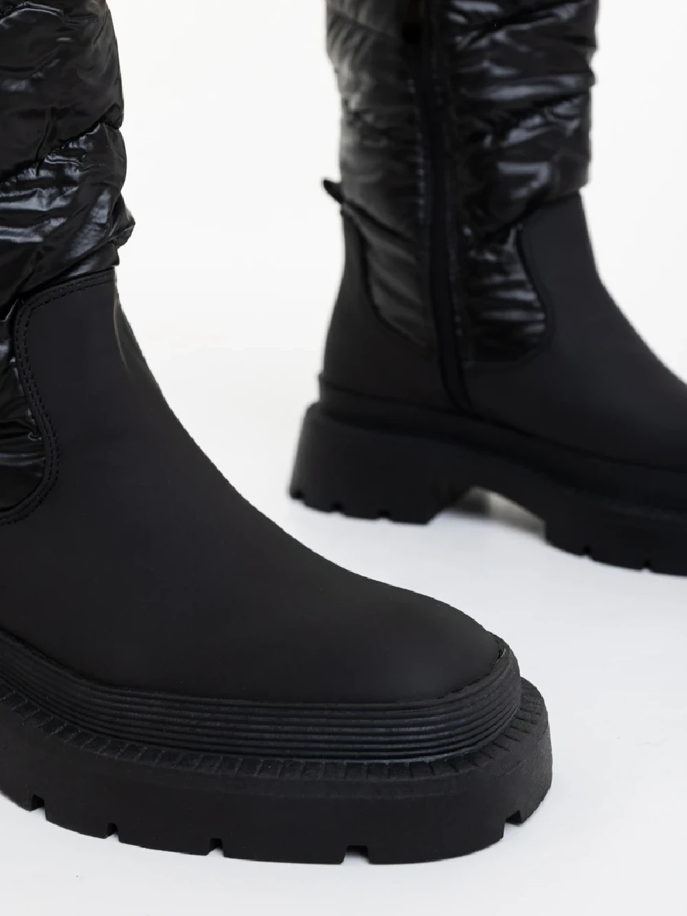 Cizme dama negre din piele ecologica si material sintetic Linora