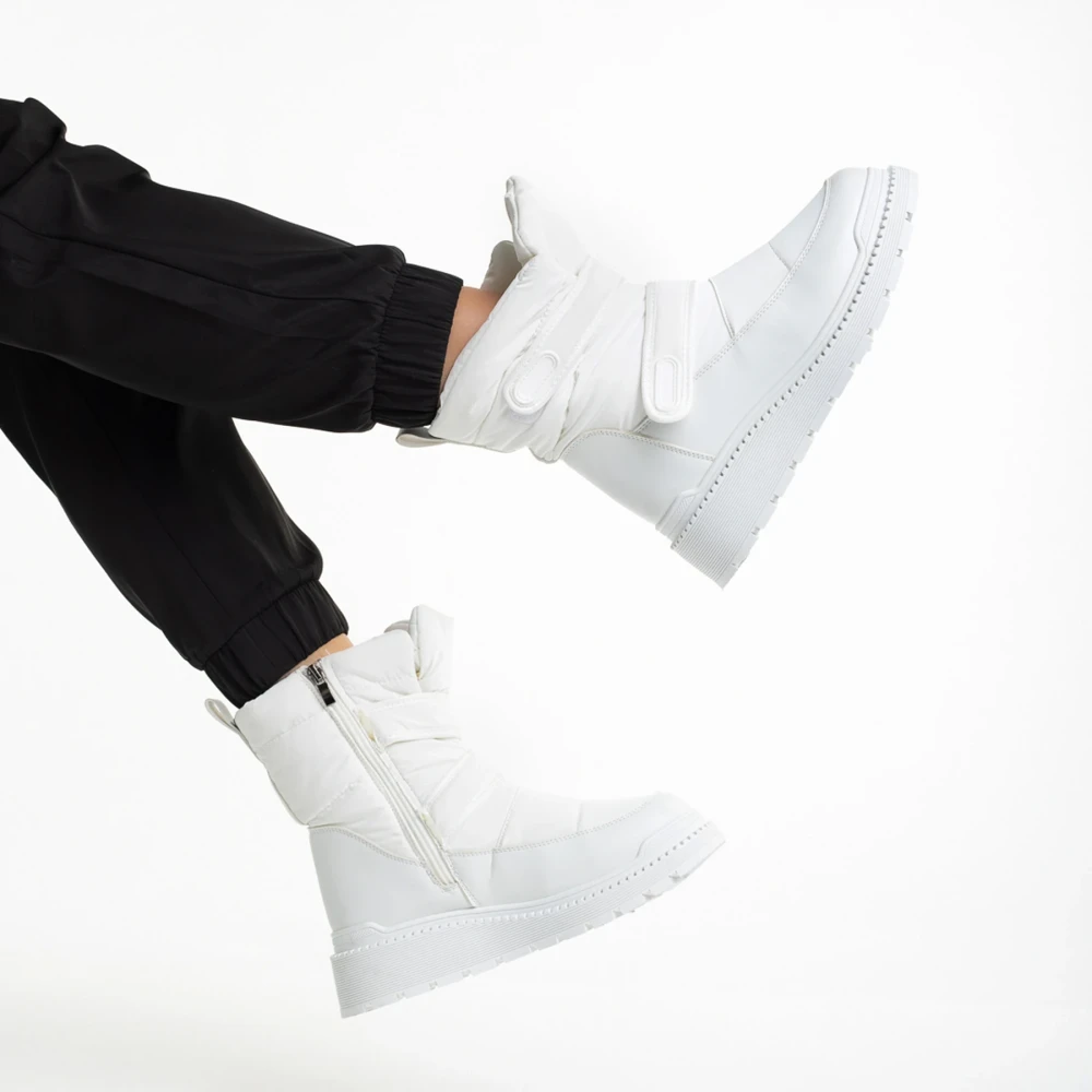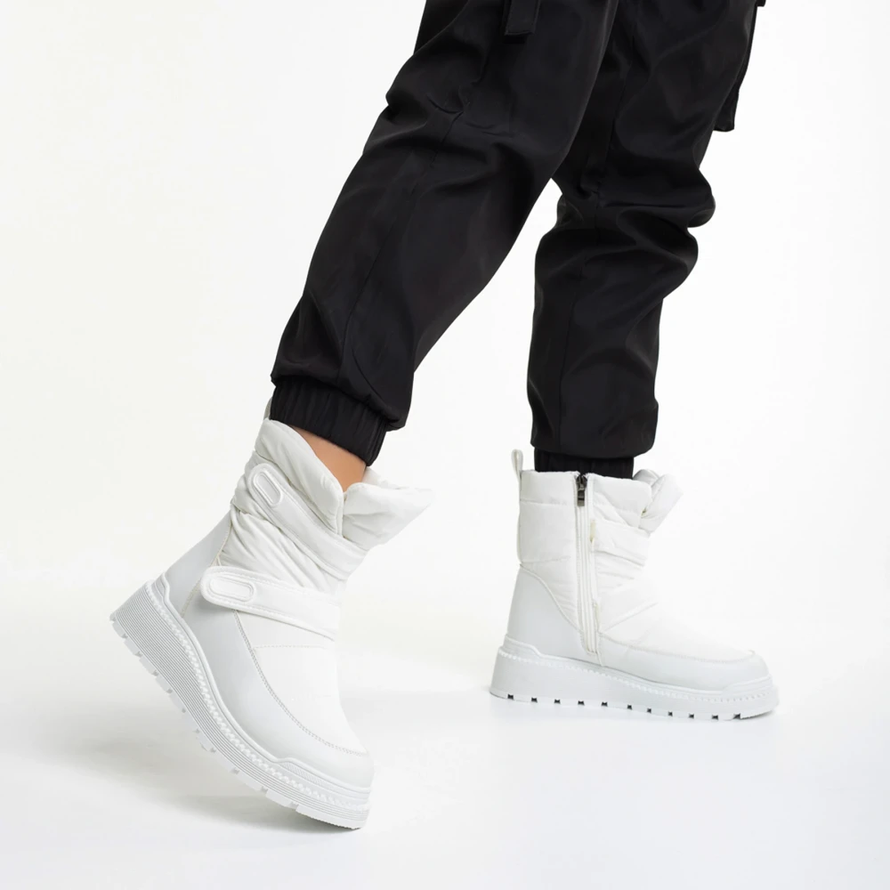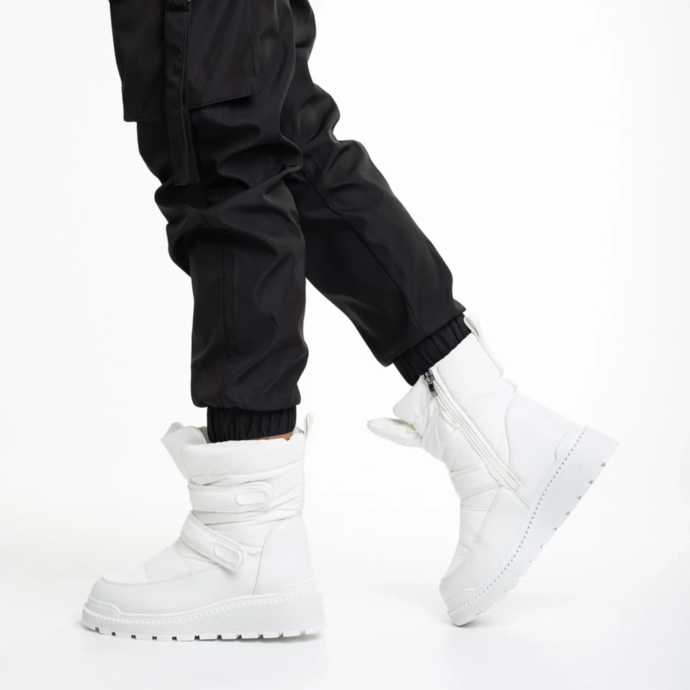 Cizme dama albe din piele ecolofica si material textil Xiomara Detalii produs