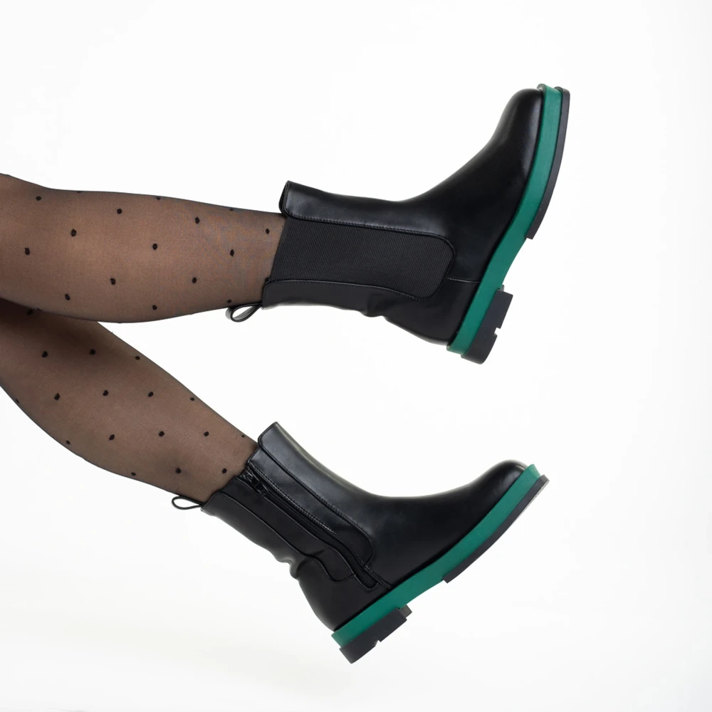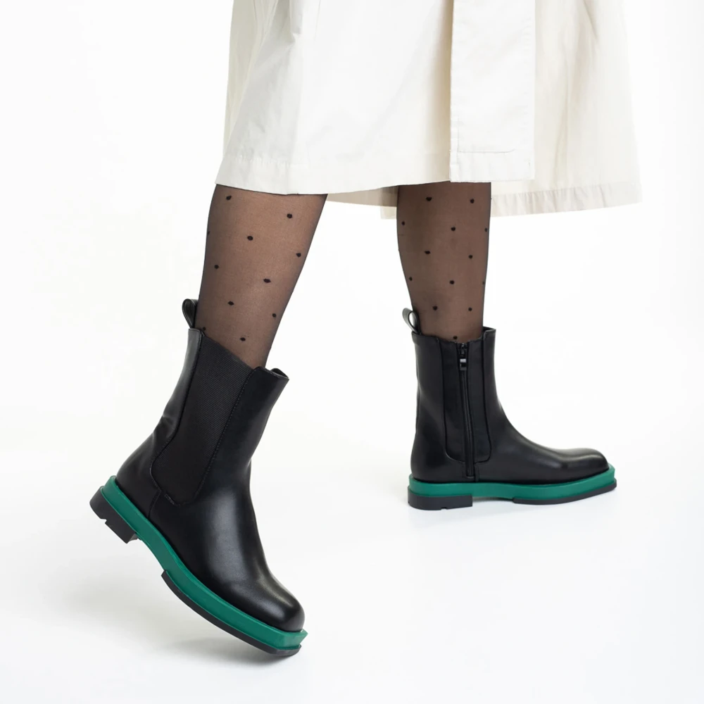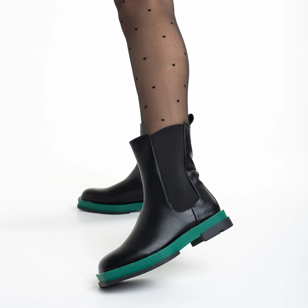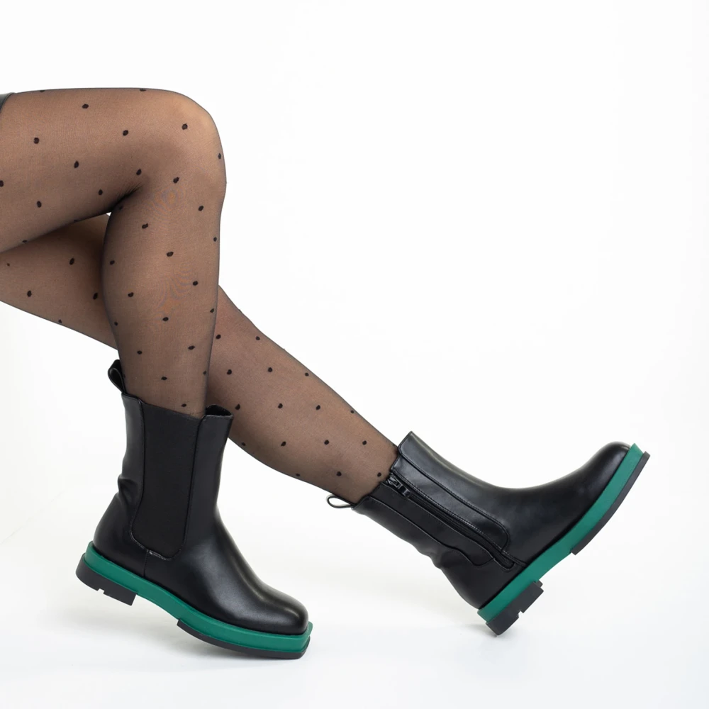 Cizme dama negre cu verde din piele ecologica Verma