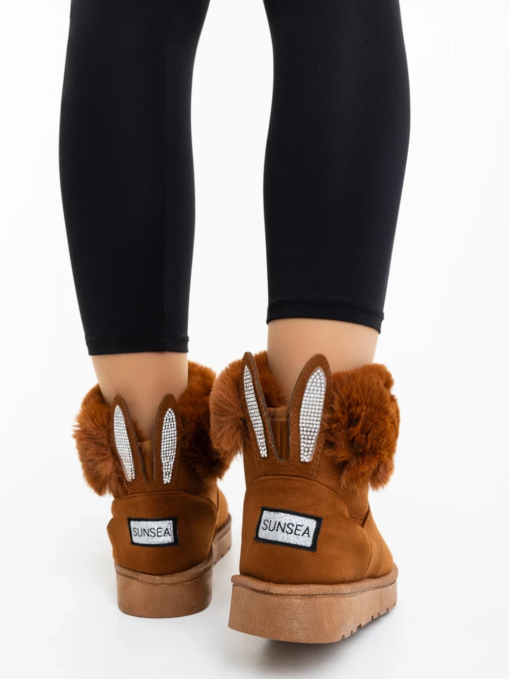 Cizme dama camel din material textil Ezera