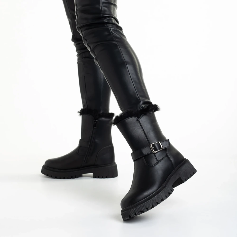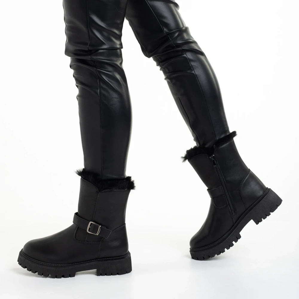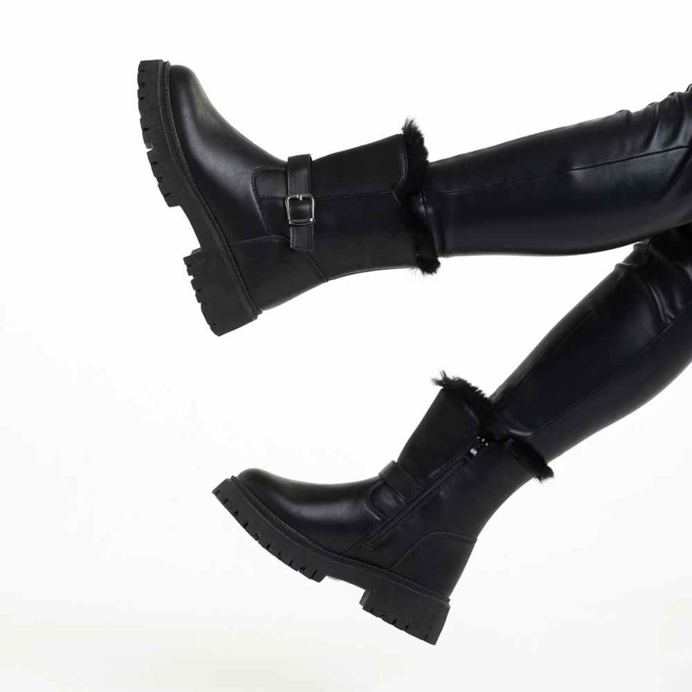 Cizme dama negre din piele ecologica Valeda