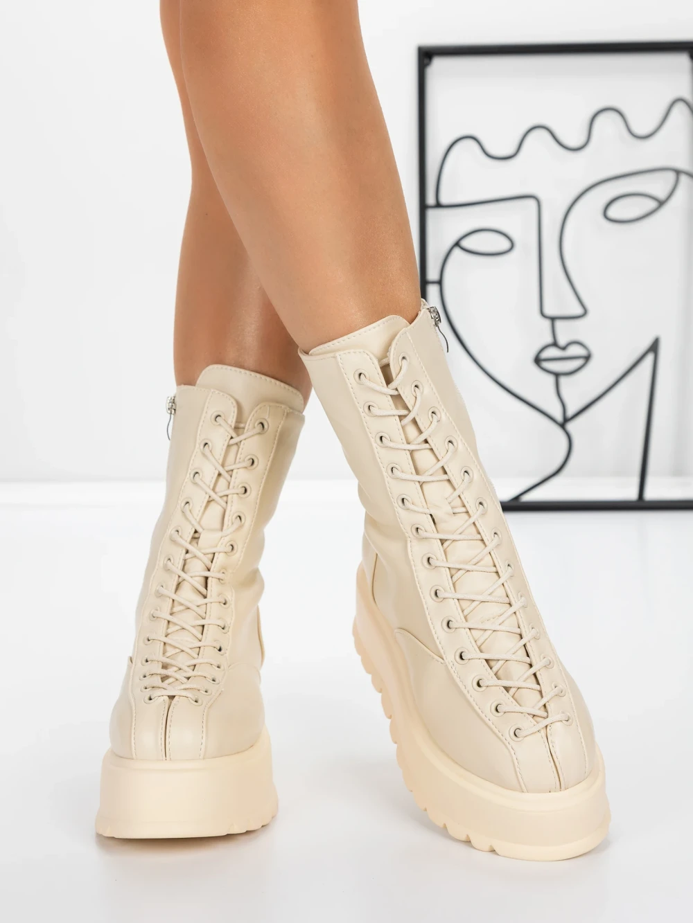 Ghete Dama cu Platforma 3AL26 Bej | Mei