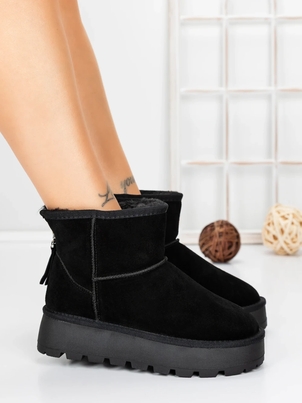 Ghete Dama din piele naturala 3AWZ5 Negru | Mei