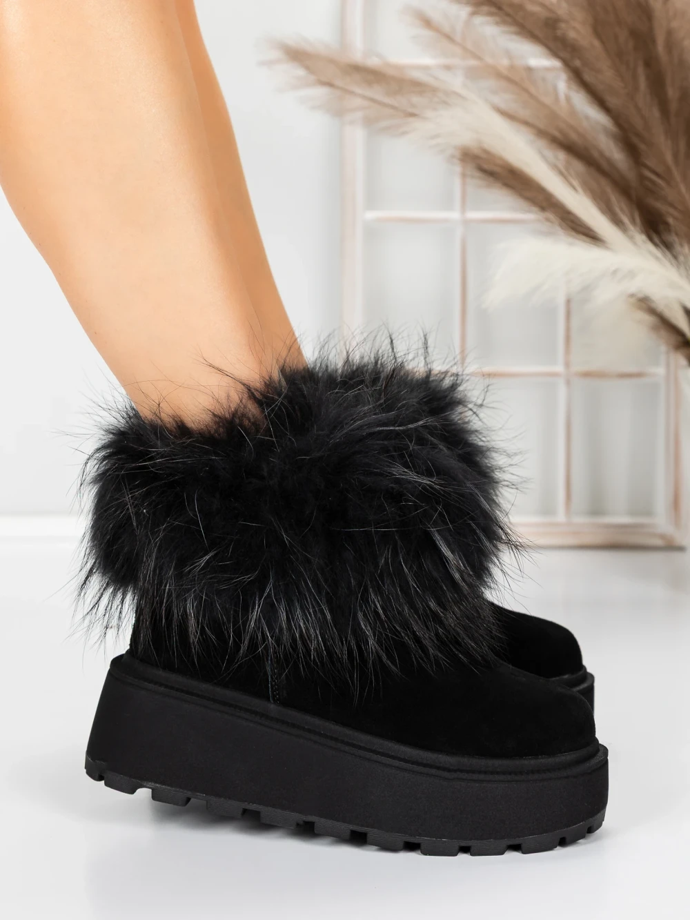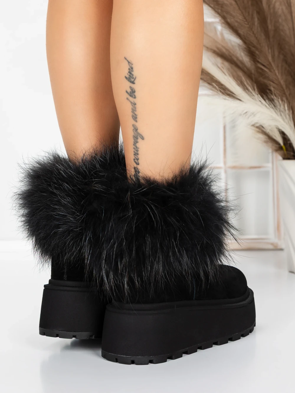 Ghete Dama din piele naturala 3ASJN73 Negru | Pantoful
