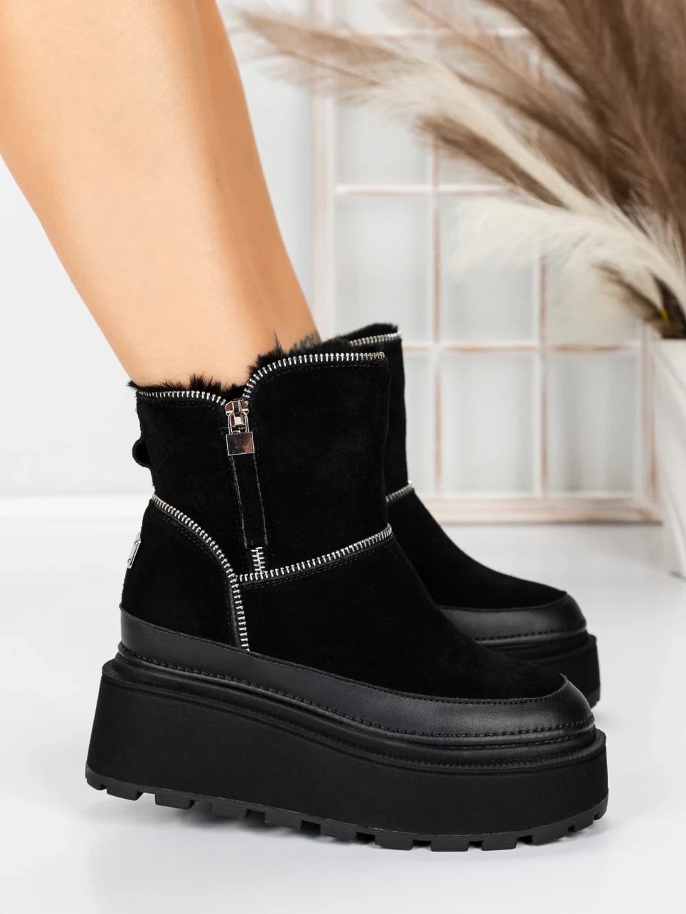 Ghete Dama cu Platforma 5W70 Negru | Pantoful