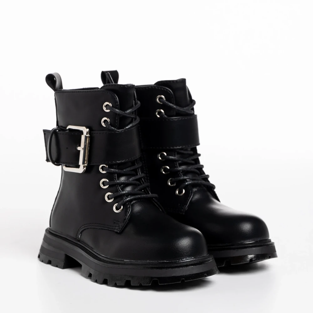 Ghete copii negre cu argintiu din piele ecologica Verdia