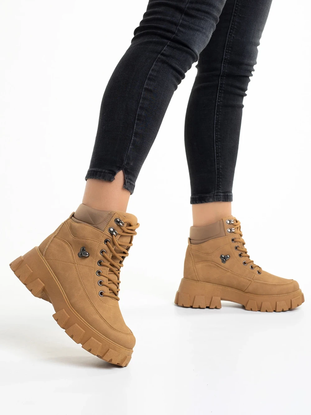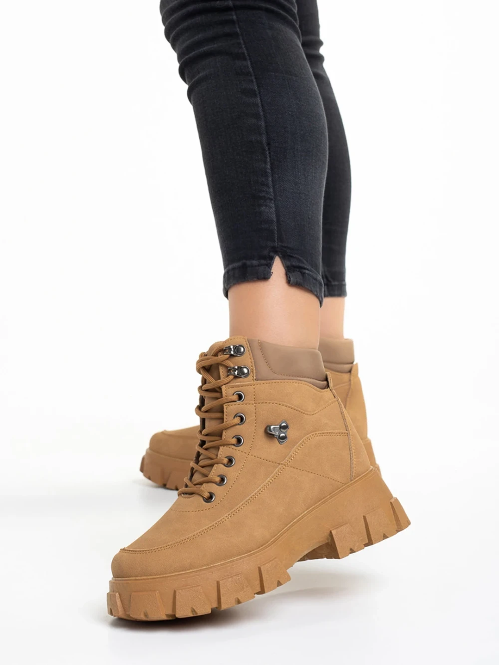 Ghete dama camel din piele ecologica Tolena