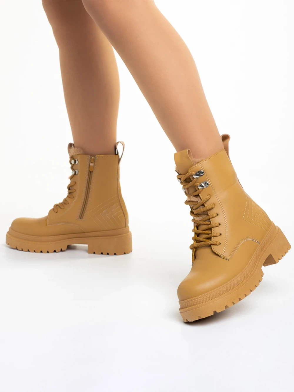 Ghete dama camel din piele ecologica Zoa Detalii produs