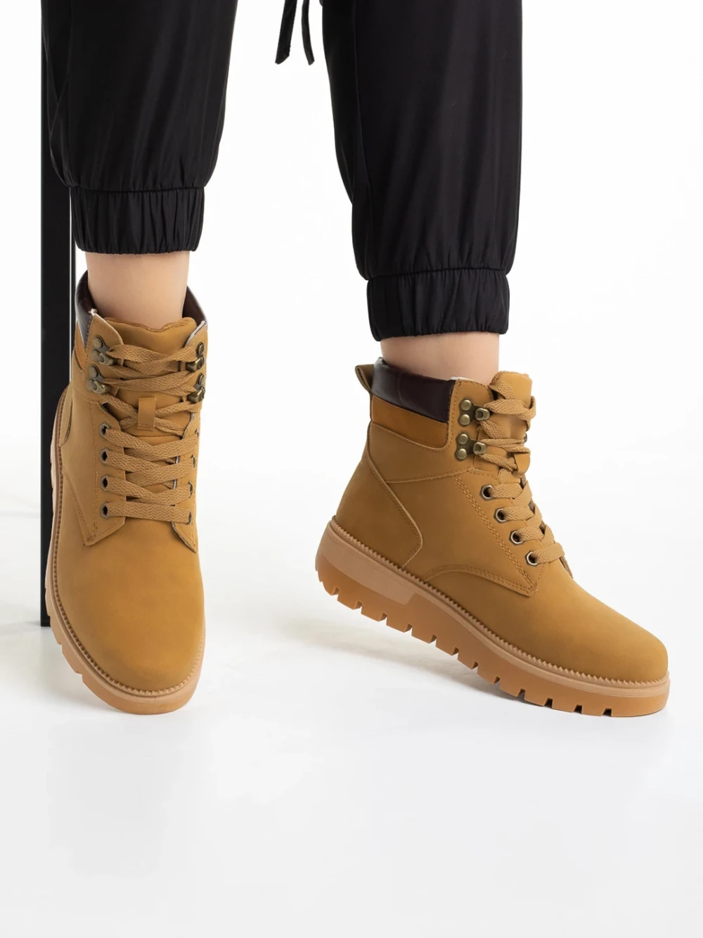 Ghete dama camel din piele ecologica Marla Detalii produs