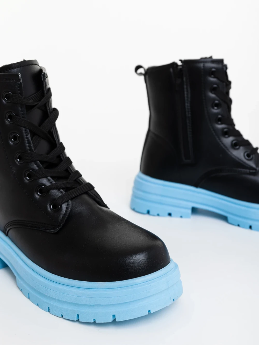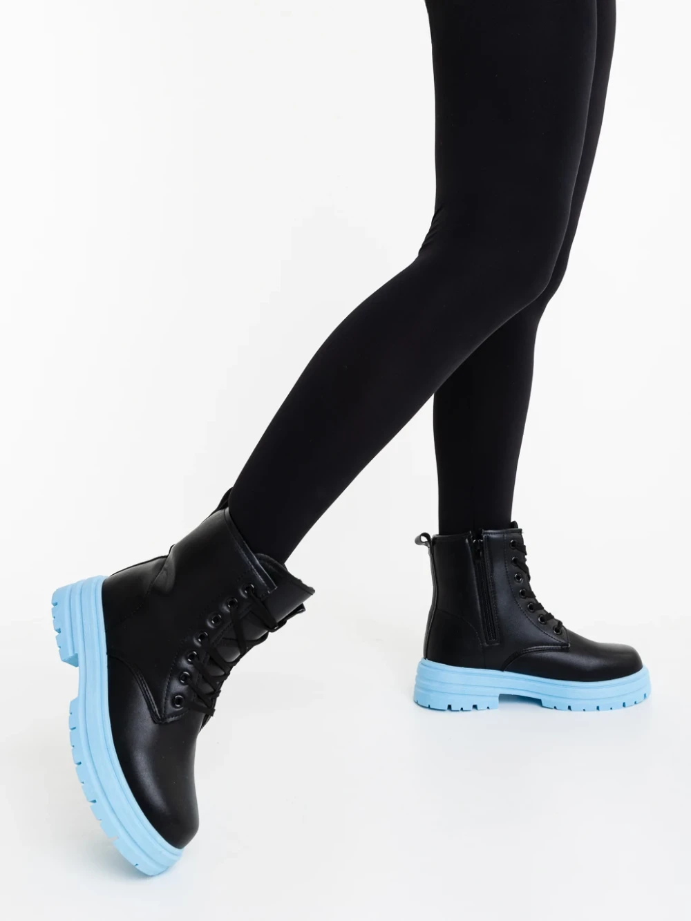 Ghete dama albastre din piele ecologica Tarali